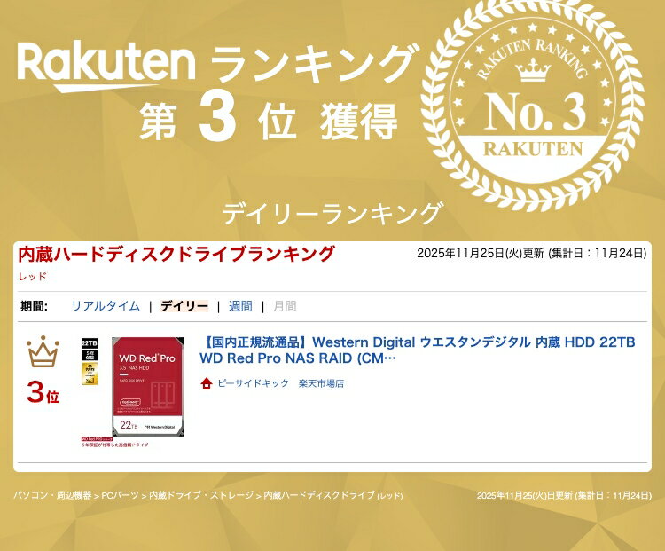 【国内正規流通品】Western Digital ウエスタンデジタル 内蔵 HDD 22TB WD Red Pro NAS RAID (CMR) 3.5インチ WD221KFGX | 内蔵hdd バックアップ 用 パソコン ハードディスクドライブ ec 大容量 省電力 PCパーツ