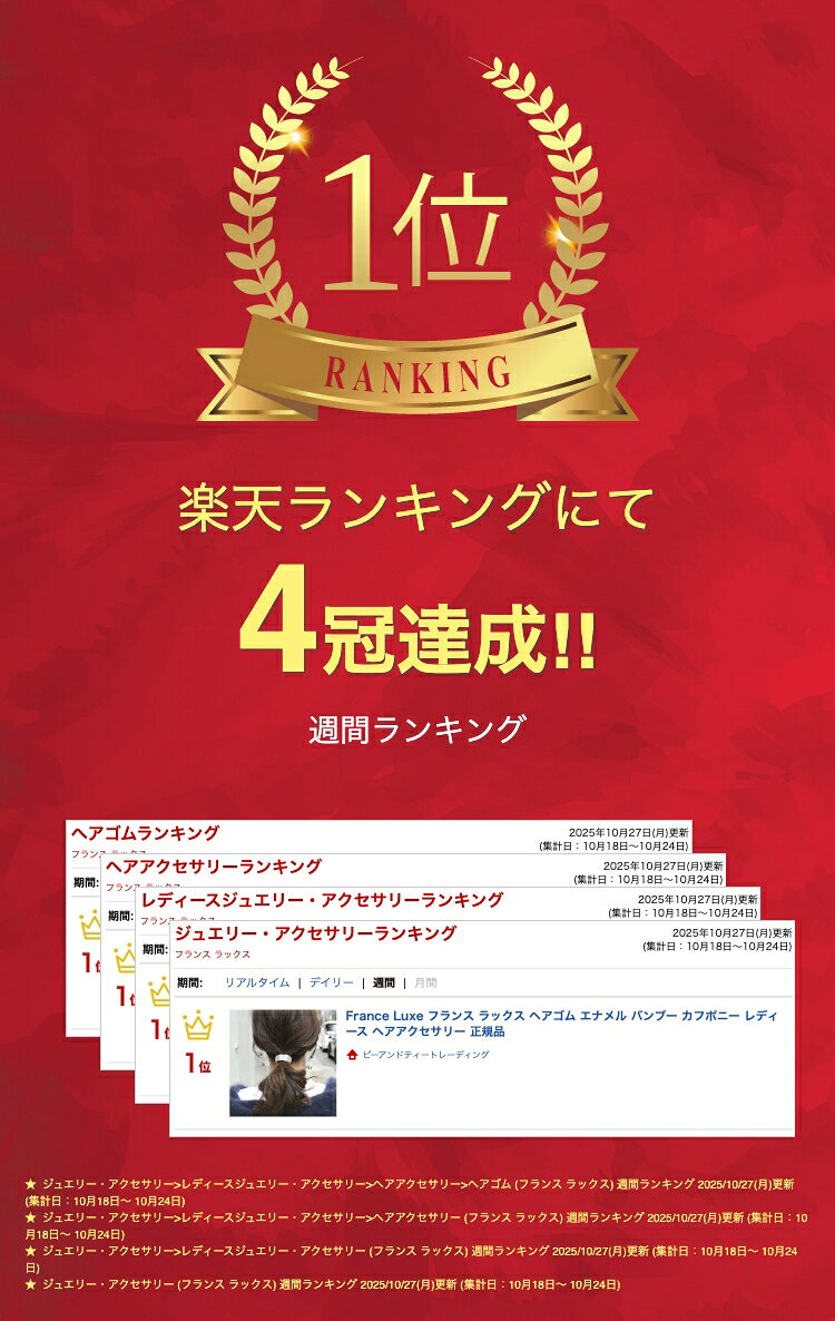 ■素材 エナメル , 合金 ■サイズ:幅1.9cm 直径3.8cm 重量:21g ■メタルを美しくウェーブさせたカフスに、手塗りのエナメルカラーが 新鮮なカフポニー。“ゆるっと”も“きちっと”もどちらのポニー もスタイリッシュに。 このカタチにエナメルカラーはFrance Luxeだけ。 使い方:ゴムで髪を結んだ後、カフを両手で開き、ゴムの結び目を隠すようにカフを開いて覆います。 *ヘアゴムの付け替えが可能な商品となっております。 付け替えはロングゴムをお好みの長さにカットして、カフの金具部分に通して結びます。 カットゴムの結び目はカフで覆うことにより外から見えてしまうようなことはございません。 ゴムが消耗してもゴムを付け替えれば半永久的にご使用いただけます! ※商品自体の、ご使用による経年劣化はございますので予めご了承ください ※ギフトラッピングはこちらで販売しております。関連商品France Luxe フランス ラックス ヘアゴム アトリエ エナメ...France Luxe フランス ラックス ヘアゴム インレイ レザー...France Luxe フランス ラックス ヘアゴム スモール インレ...France Luxe フランス ラックス ヘアゴム エナメル コーン...9,295円12,430円10,340円7,150円France Luxe フランス ラックス ヘアゴム スキニー パール...France Luxe フランス ラックス ヘアクリップ メイクオーバ...France Luxe フランス ラックス ヘアゴムセット ポニーテー...France Luxe フランス ラックス ヘアゴムセット ポニーテー...12,210円9,900円6,050円6,050円France Luxe フランス ラックス ヘアゴムセット ポニーテー...France Luxe フランス ラックス ヘアゴムセット ポニーテー...France Luxe フランス ラックス ヘアゴムセット ポニーテー...France Luxe フランス ラックス ヘアゴムセット ポニーテー...6,050円6,050円6,050円6,050円