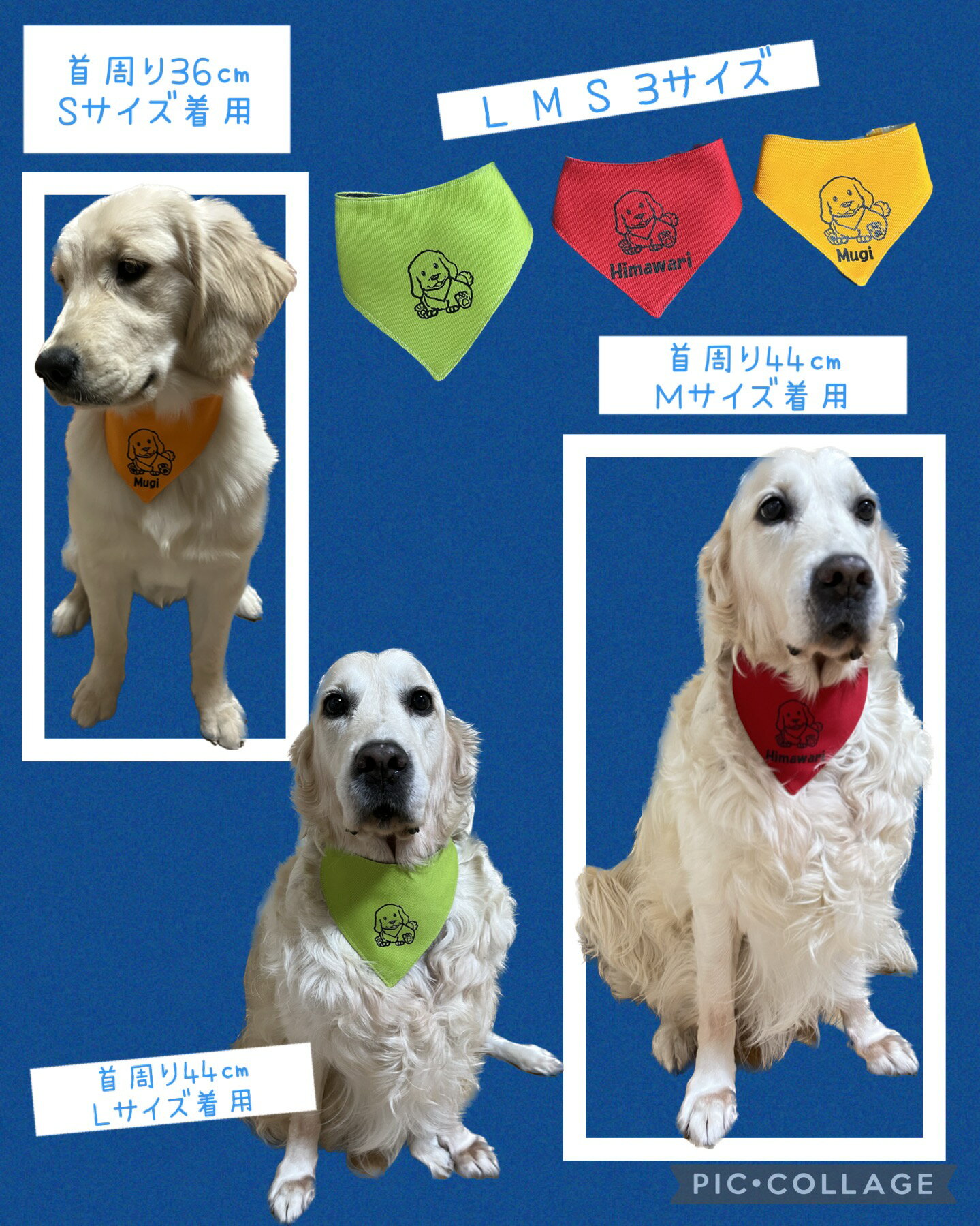 ゴールデン柄バンダナわんちゃんのお名前入ります 可愛いゴールデンレトリバーのイラストにわんちゃんのお名前入れますお名前なしも可能です 5