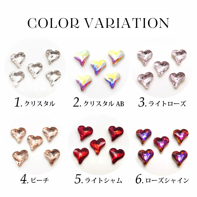 ネイル ガラス ストーン 18 キュート ハート型 5個入り