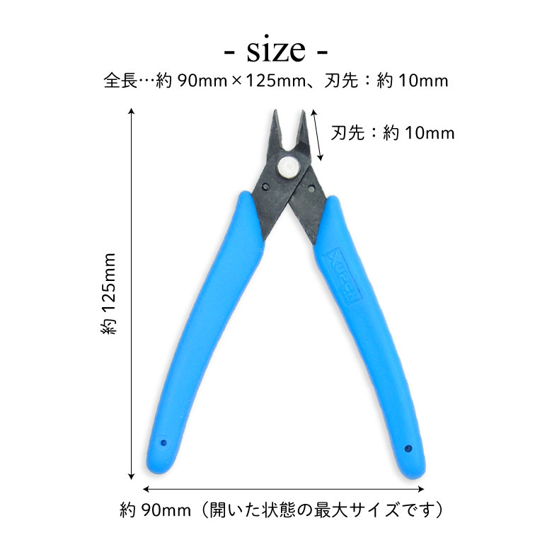 商品について 特徴 挟んでみないと分からない良さがある!滑らないパーツ外しの至高はこれ!感動ニッパー♪ グリップが握りやすく、持ちやすいサイズ感が特徴的なニッパーです。 刃先に角度がついているので、ストーンやパーツ等を楽々外すことが出来ます◎ ストーンやパーツなどの取り外しはもちろん、チェーンのカットも簡単に出来ます♪ チェーンやワイヤー等のカットも出来るので、ネイルだけでなく、レジン・ハンドメイドの作品作りやアクセサリー制作等にも使うことが出来ます。 サイズ 全長…約90mm×125mm、刃先:約10mm ※画像参照 その他 *先端が尖っていますので、お取り扱いの際はご注意ください。 *海外輸入製品の為、刃先や持ち手部分に汚れ等が付着している場合がございますが、不良品ではございません。予めご了承ください。 *モニターや環境などにより、商品写真と実際の商品の色合いが異なる場合がございます。 関連商品 ・ネイル キューティクルカッター 1本 ・アンティーク調 シザー ・ チェーンはこちら ・ピンセットはこちら