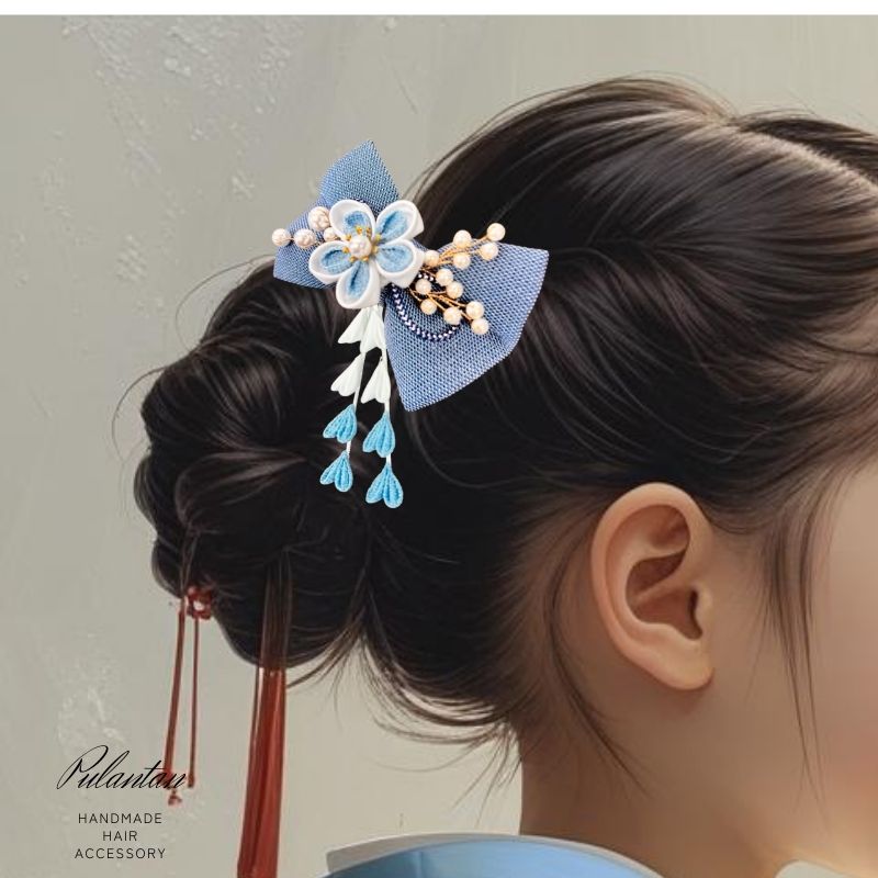 七五三 髪飾り 2点セット 三歳 七歳 日本髪 リボン 着物 パール 花 和 ちりめん 下がり ヘアクリップ 赤 ピンク 水色 青 3歳 7歳 かんざし キッズ 袴 女の子 メール便 送料無料 Uピン 和装 ヘアアクセサリー ヘアアクセ