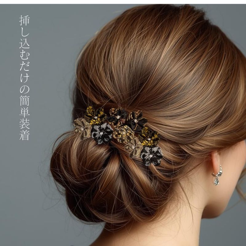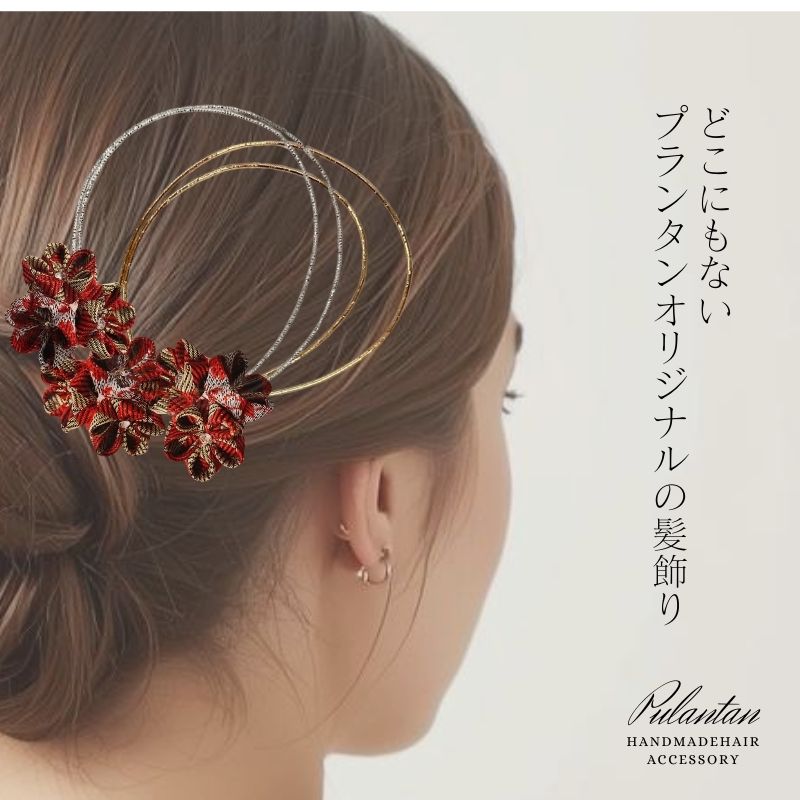 簡単装着 髪飾り ハンドメイド 畳縁 ヘアアクセサリー 小花 お洒落な かんざし モチーフサイズ4.8×4.6cm 畳縁を使用し製作している髪飾り。畳へりの柄、桜やあやめなどの花や紋を活かしカラーも黒 赤 青 緑や人気のあるワインレッドやネイビーなど豊富に取り揃えている和装用のヘアーアクセサリーです。着物 浴衣 袴 法被 訪問着 黒留袖 色留袖 によく合いお呼ばれや結婚式、入学式や卒業式などの色々なシーンに合う 大人の女性にもお子様にも幅広くお使いいただけるシンプルな超軽量な和のヘアアクセサリー。お祭り時の法被や和装のステージにもピッタリのシンプルなリボン ヘアアクセサリー。 挿し込むだけで簡単手軽に装着。本数を増やして華やかにしたり他のアイテムと組み合わせてもお使いいただけます。 □おすすめのコーディネート 着物 袴 浴衣 法被 訪問着 色留袖 黒留袖 和装 □おすすめのシーン 入園式 入学式 卒業式 卒園式 成人式 結婚式 祭り ステージ