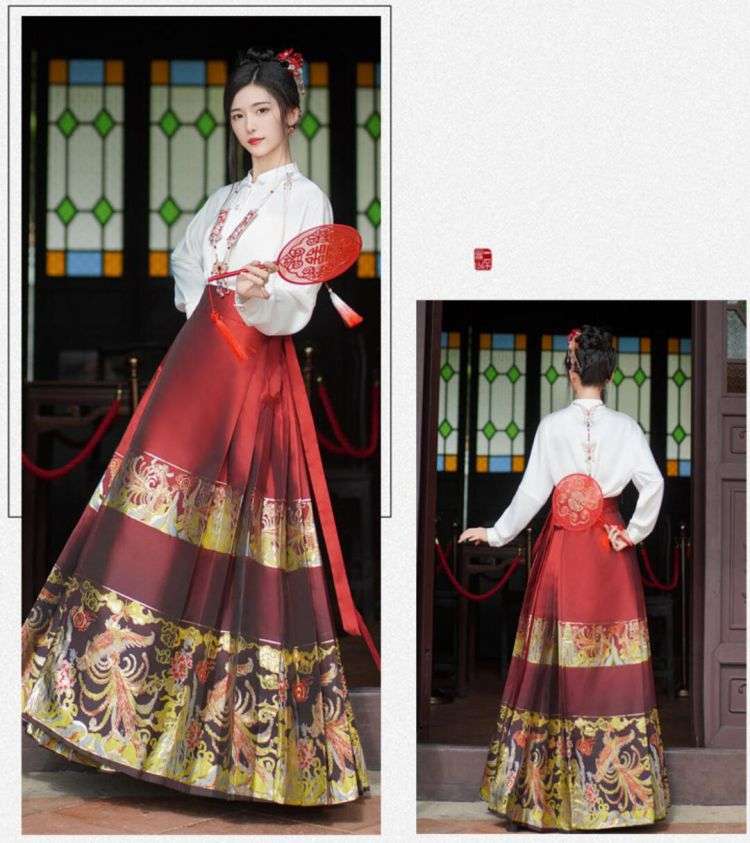上質 中華服 新作 中華衣装 大人用 漢服 女性 赤 鳳凰 刺繍 光沢感あり 中華風 パーティー 結婚式ドレス 二次会ドレス 日常着可 イベント 学園祭 華流 コスプレ衣装 時代劇 ステージ衣装 上下2点~3点セット 長袖 シャツ 袴風スカート ロング丈 巻きスカート プリーツスカート