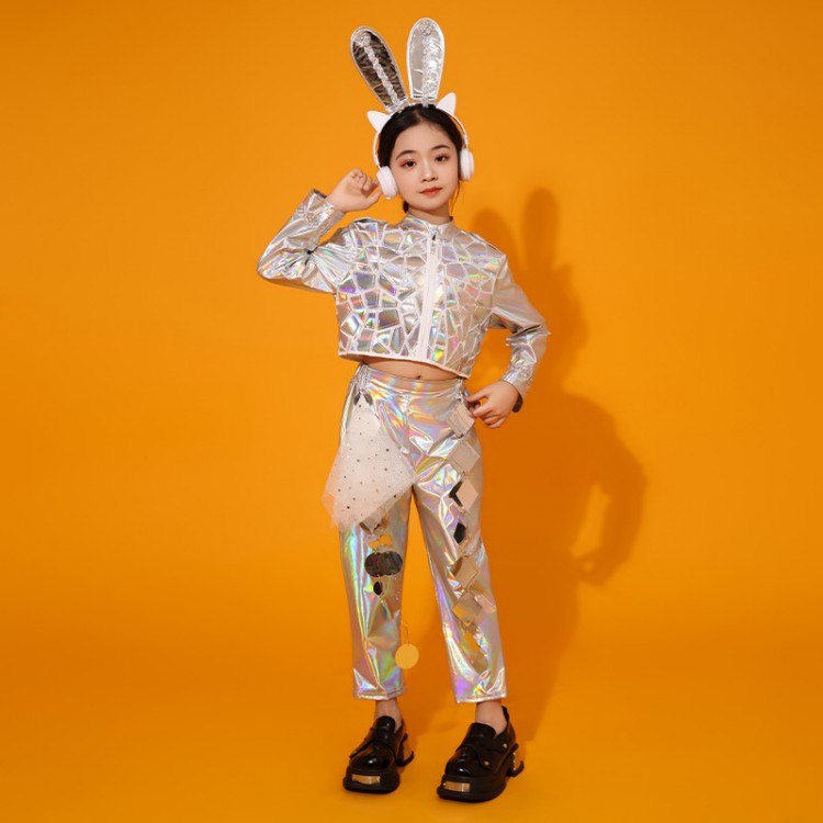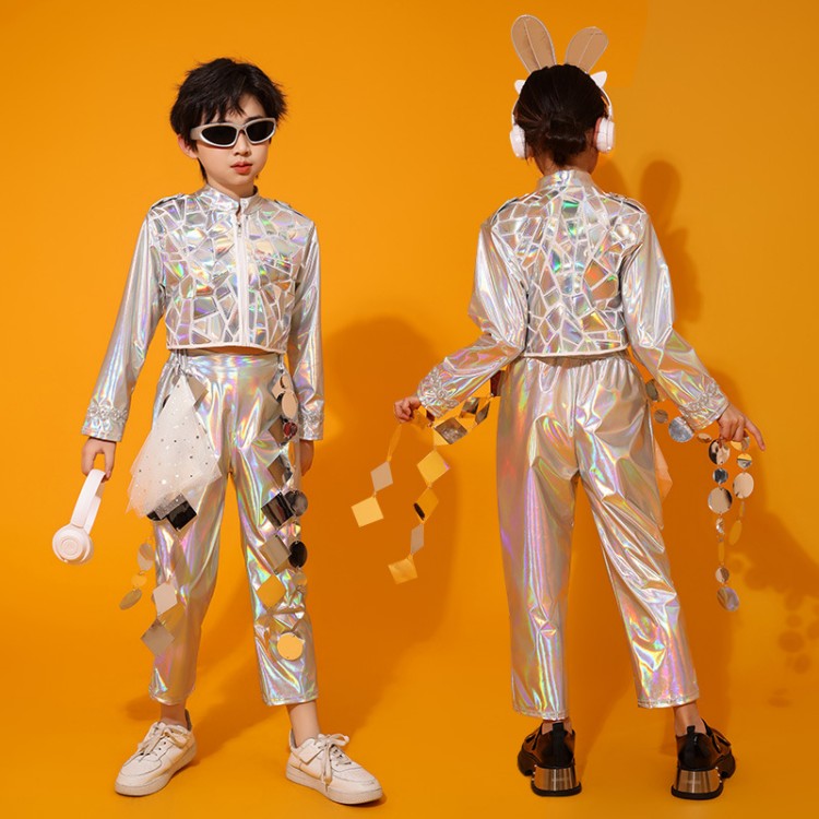 子供 キラキラ 舞台 ステージ衣装 キャットウォークショー ロボット ダンス 衣装 ジャズ ヒップホップ ダンスウェア 上下セットアップ トップス+パンツ ストリートダンス 子供服 男の子 女の子 ファション モデルショー 大きいサイズ 演出服 110~180cm