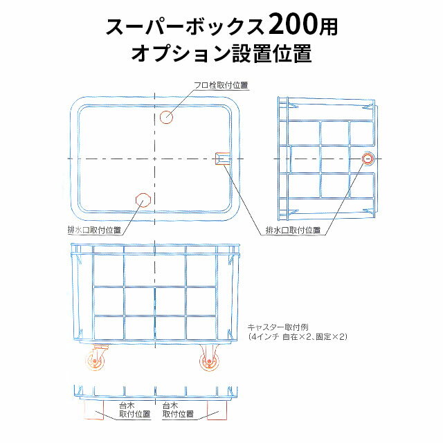 岐阜プラスチック工業 大型コンテナ— スーパーボックス200専用 1インチ排水口セット【個人宅配不可】【(土・日・祝)日時指定不可】