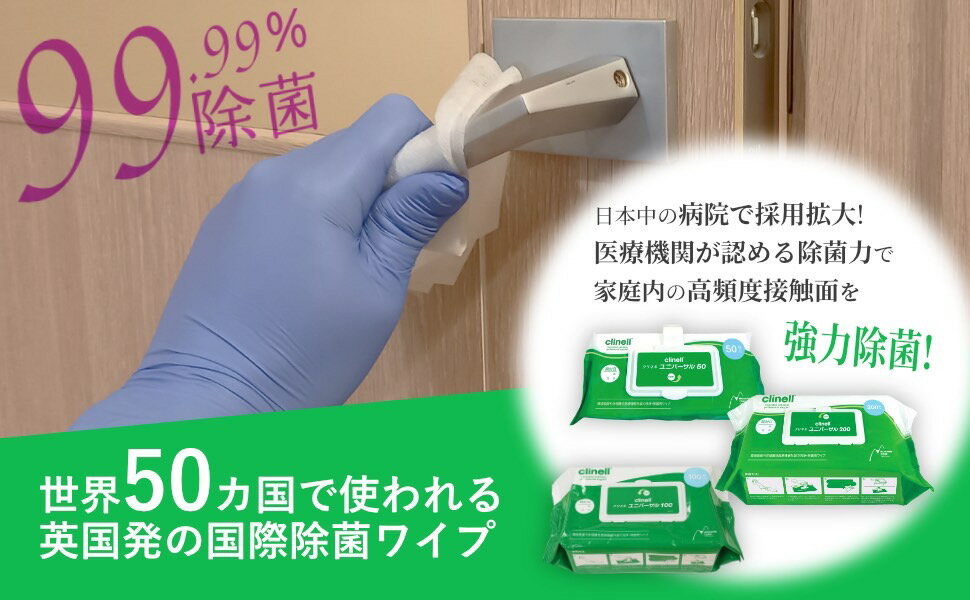 ※ご使用の際は手袋をご着用の上ご使用ください。 【商品名】 クリネル ユニバーサル 100 【容量】 100枚入 【使用期限】 開封後 3ヶ月 【製品の特徴】 ただ、拭くだけ! 希釈も詰め替えも必要なし! クリネルユニバーサル100 は環境表面や非侵襲性医療機器外装の洗浄・除菌ワイプです。 さらに、開封後6ヶ月効果持続に改良しました。 欧州規格EN1276、EN13727、EN1446に準拠した試験を実施。 【使用上の注意】 ・感染対策上、グローブの装着を推奨します。 ・本製品のパッケージに記載されている使用方法・破棄方法は医療機関向けの使用方法です。一般のご家庭で使用される場合は、使用後はゴミとして処分してください。 ・本製品は水に溶けませんので、トイレには流さないでください。 ・クリネル ユニバーサルワイプ(シート)は、人体やペットの体、食器、食品の清拭等には使用しないでください。 ・使用後は必フタをしっかりと閉めてください。 ・目に入った場合は、15分〜20分間水で洗い流し、医師に相談してください。 ・子供の手に届かないところに保管してください。 ・直射日光や高温多湿の場所を避けて保管してください。 ・用途以外に使用しないで下さい。 ・ワイプ(シート)を取り出したときに乾いていると感じたら、製品を裏返して数秒揉んでください。洗浄・除菌成分を含む薬液が行き渡ります。
