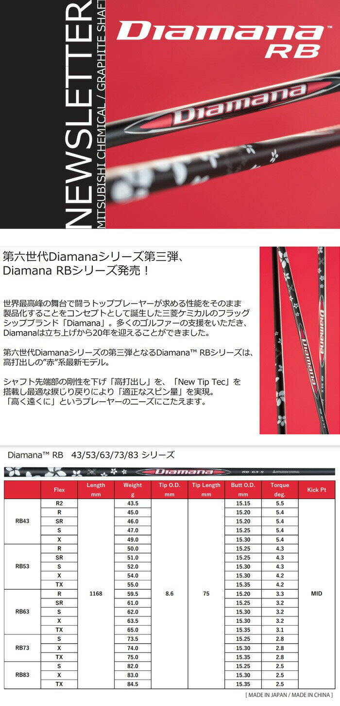 【カスタムオーダー】【スリーブ付き】ヤマハ RMX DD ドライバー用 Diamana RB カーボンシャフト シャフト単体[YAMAHA Golf ヤマハゴルフ リミックス ディーディー]【■Kag■】