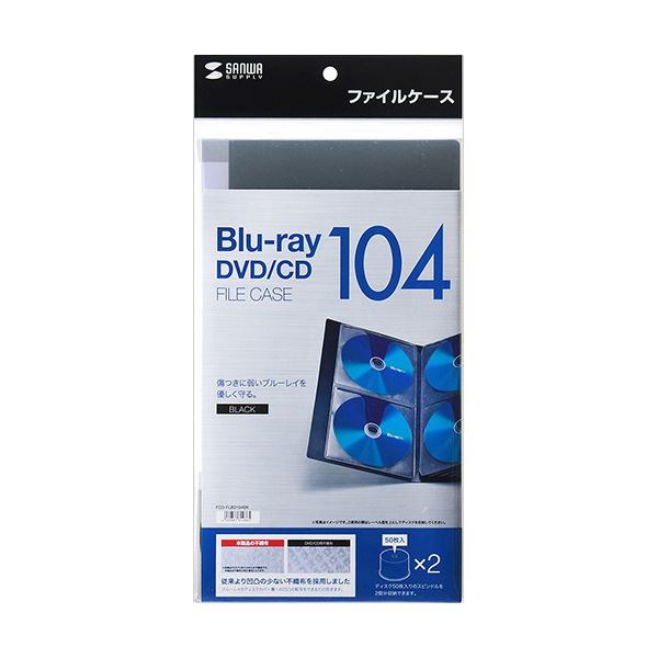 (まとめ) サンワサプライブルーレイディスク対応ファイルケース 104枚収納 ブラック FCD-FLBD104BK 1個 【×10セット】