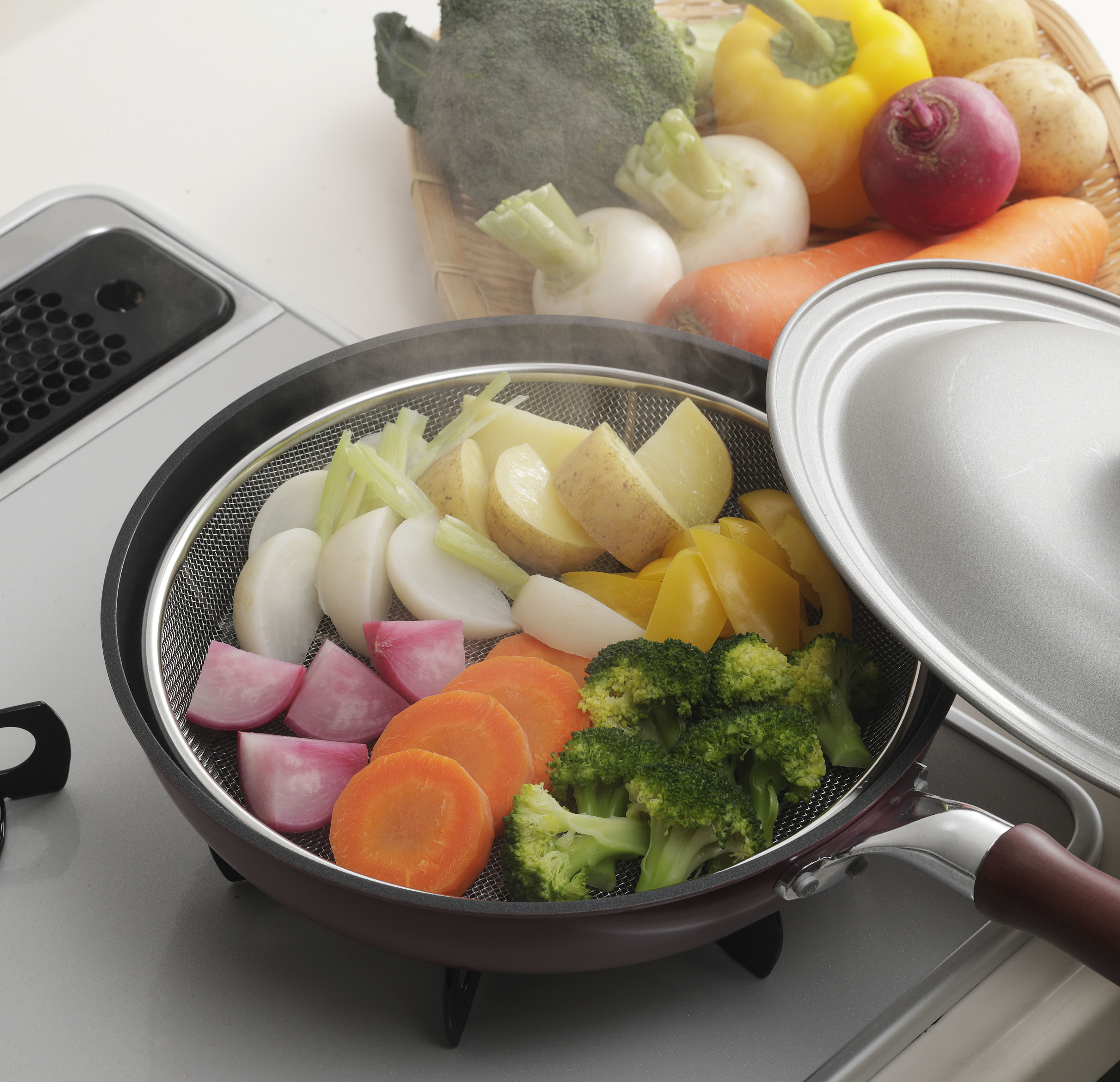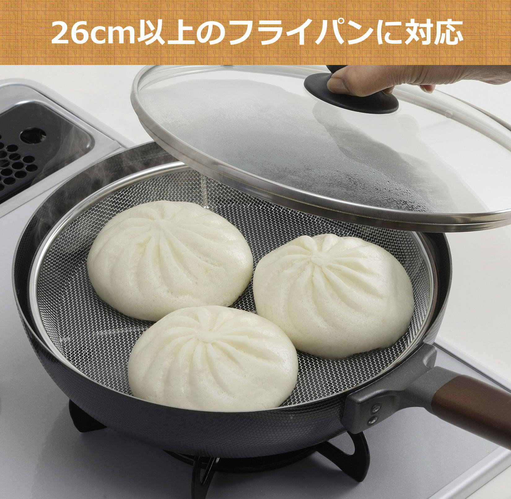 下村企販 フライパンで使える 蒸しざる 25cm 【日本製】 食洗機対応 フライパンで手軽に蒸し料理 水切れがいい 14メッシュ 脚付き 肉まん 焼売 そうめん とうもろこし 蒸し器 ステンレス 燕三条 43201 送料無料