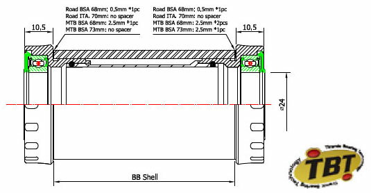 コンポーネント・パーツカテゴリの人気商品コンポーネント・パーツカテゴリ商品一覧コンポーネント・パーツ≫ロードバイク用≫ボトムブラケットBB≫本体 TOKEN(トーケン)Colour options:ブラック、ゴールド、レッド、ブルーAssembled with #6805R bearing φ24×37×7mm for precise crank/spindle fitDual lip, labyrinth low-friction rubber seals for better water resistanceCNC forged aluminium cupsShimano compatibleBSA1.37”×24T for Road to fit 68mm shellBSA1.37”×24T for MTB to fit 68/73mm shellEquipped with Tiramic Bearings or sealed bearingsTK878TBT with 6805R-TBTTiramic Bearings,103g/set