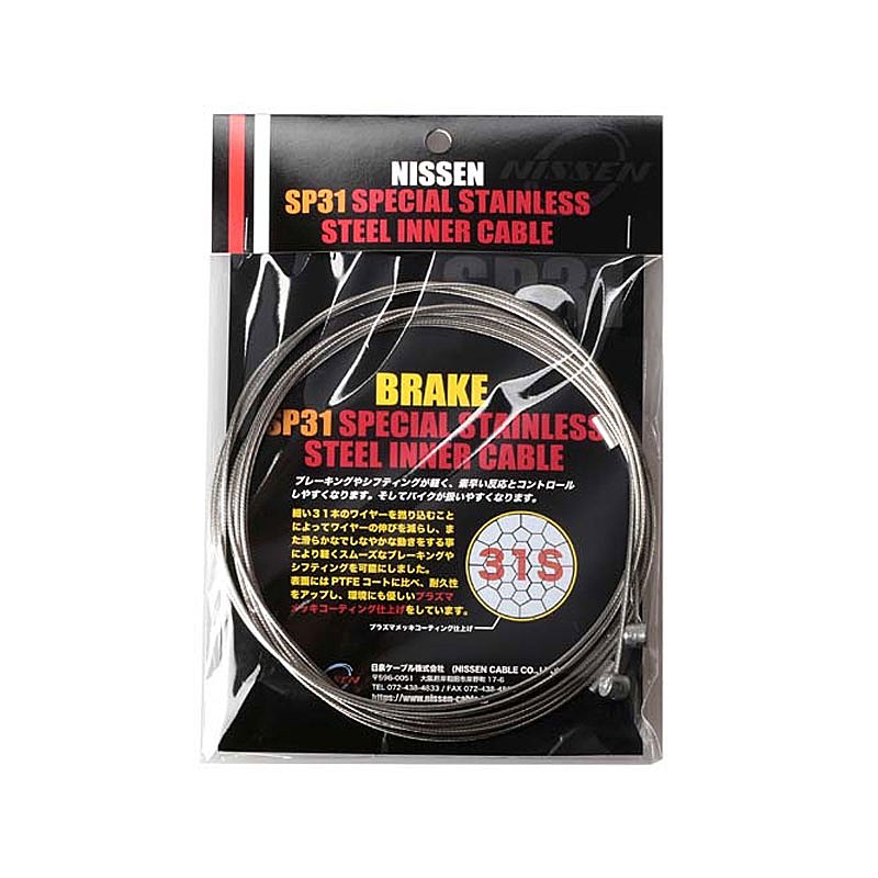 日泉ケーブルは創業当初は織機バネなどを製造しその技術を生かし、自転車ワイヤーの製品を製造している。 アウターワイヤーのコイル形状やインナーワイヤーの捻など自転車には重要なブレーキングに最適な製品を提供する。■ SP31 スペシャルステンインナーブレーキ ● MTB 対応 シマノロード対応 カンパロード対応 ※カンパ用は前後セットのみ ●フロント用: 1m・リヤ用2m