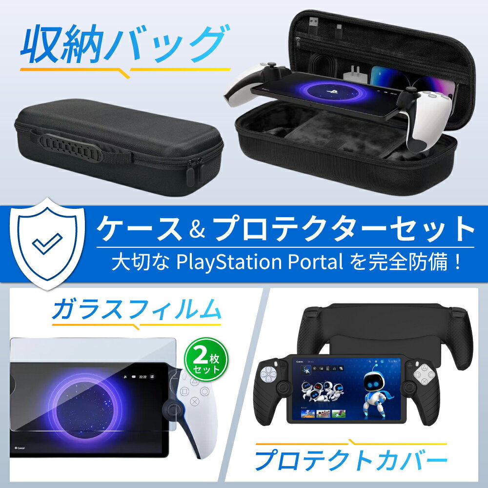 PlayStation Portal 収納ケース PS5 リモートプレーヤー プレイステーションポータル ポータブル PS Portal コントローラー プロテクトカバー 保護カバー ガラスフィルム 強化ガラス ケース 収納 保護ケース ハードケース 収納バッグ 軽量 バッグ 耐衝撃 キズ <送料無料><最強翌日配送><保証付き>お得な3店点セット Portal用ケース ガラスフィルム 保護カバー 人気 プレゼント クリスマス 誕生日 ケース&プロテクターセット大切なPlayStation Portalを完全防備!・収納バッグ・プロテクトカバー・ガラスフィルム■耐久性抜群のEVA素材ケース・耐衝撃・撥水・耐摩擦・耐防汚EVA素材とは?軽量で柔軟性、弾力性に優れた丈夫な素材です。■抜群の収納力小物も収納できるから、バッグ一つに必要な物がすべて収まる!底部には充電アダプター収納スペースあり内側はやわらかい起毛素材■持ち運びしやすい・持ちやすい丈夫な持ち手・開閉しやすいダブルジッパー■プロテクトカバーボディーにぴったりフィットし、衝撃からしっかり守る!・環境に優しいコーン素材・落下防止/衝撃吸収・持ちやすいグリップ・洗えるから清潔保持■エルゴノミックグリップやわらかい素材のグリップで、長時間のプレイでも疲労軽減。しっくり手に馴染み、激しいアクションゲームをアシスト!・コンフォートグリップ・滑りにくい質感■衝撃吸収高価で大切なPlayStation Portalを破損させたら大変!予期せぬ落下!不意の傷や汚れからプロテクト!■強化ガラスフィルム貼っていることを忘れるほどの透明感!ディスプレイを傷からガード!傷に強い/9H硬度/取付簡単/指紋防止/高透明性/滑らか■セット内容・収納ケース・プロテクトカバー・ガラスフィルム×2 5