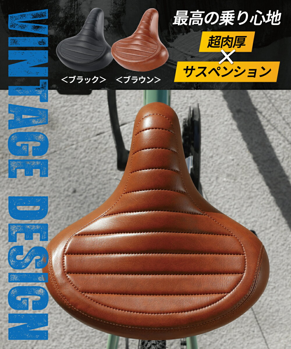 自転車 サドル シート クッション ママチャリ クロスバイク シティーサイクル 電動アシスト自転車 柔らかい ソフト 肉厚 厚手 衝撃吸収 サスペンション スプリング 防水 お尻 痛くない 痛くならない ビンテージ ヴィンテージ レトロ タックロール ブラック ブラウン 黒 茶色