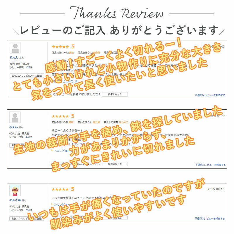 ▲ メーカーの価格改定の為、2025年10月1日より価格変更いたしました。 大きなグリップとパッチワークに程良い刃の長さで使い易いハサミです。 布切り用はさみです。 握り易く、布が逃げないのでおすすめです。 パッチワークに使いやすい適度な刃の長さで、細かい作業も楽にできます。 サイズ(約):全長19cm 刃の長さ6.5cm 重さ65g * 弊社商品は店舗・通信販売・WEBショップで在庫を共有しております。在庫更新のタイミングにより在庫切れとなった場合は、やむを得ずキャンセルさせていただくことがございます。