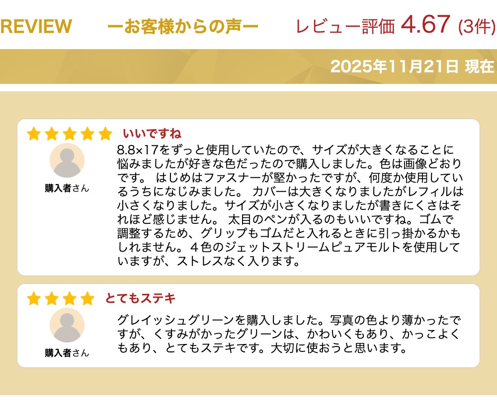 淡い色合いが魅力の本革製ミニ6システム手帳カバー ミニ6サイズのバーチカルタイプ、システム手帳「Timer14」専用の本革ジップカバー。 本革モデルにくすみがかったパステルカラーをまとった“ダスティパステル”。 従来モデルをベースに、ファスナーやバインダー、カードポケットなど細かな部分に変更を加え、エレガントに仕上げました。 あえてカバー上部分をあけたL型のジップにすることで、中身が厚くなっても開閉しやすく、ジップを閉じたままでもペンを取り出すことができる便利な仕様です。 機能性とデザイン性を兼ね備えたシステム手帳です。 ※カバーのみの販売です。 ブランド:クオバディス サイズ:COVER SIZE /13.5x15cm リング径:13mm 対応ダイアリー:Timer14(8x12.5cm ミニ6サイズ) MiniTimer(9x12.5cm) メーカー希望小売価格はメーカーカタログに基づいて掲載しています 【フランスのステーショナリーを大切な方へ】 デザイン性に優れ、高級感のあるフランス文具は、大切な方への贈り物や感謝を伝える際にご使用いただくのに最適です。 ●気持ちを込めて ギフト プチギフト プレゼント 贈り物 手土産 御礼 お礼の品 お返し 引っ越し ご挨拶 転勤 転職 産休 ご褒美 手紙 お便り メッセージ グリーティング インビテーション ウェディングギフト ブライダルギフト 招待状 席札 ネームカード スタンプ 手作り ハンドメイド 封ろう 初心者 こだわり おしゃれ おもてなし DIY 高級感 アンティーク クラシカル オンリーワン サプライズ デコレーション デコ イニシャル クリスマスプレゼント 冬ギフト クリスマスギフト ホリデーギフト ラッピング ギフトラッピング セルフラッピング クリスマスラッピング ラッピングBOX ラッピングボックス ●大切なイベントに クリスマスプレゼント 誕生日 バースデー お歳暮 お年賀 バレンタインデー ホワイトデー 卒業祝い 入学祝い 母の日 父の日 こどもの日 お中元 夏ギフト 敬老の日 ハロウィン 同窓会 ウェディング ブライダル セレモニー パーティ ホリデー 卒業記念 記念品 引退 ミニギフト おめでとう ●お祝い事などに 出産祝い 結婚祝い 内祝 引き出物 就職祝い 昇進祝い 退職祝い 還暦祝い 新築祝い 結婚式 披露宴 引出物 金婚式 銀婚式 男性向け 女性向け 中学生 高校生 大学生 文房具関連商品【50%オフ!】クオバディス 本革 システム手帳 カバー バイブルサイ...システム手帳 カバー QUOVADIS タイマー14 ミニ6穴サイズ ...システム手帳 カバー QUOVADIS タイマー14 ミニ6穴サイズ ...11,000円17,600円17,600円クオバディス 本革 システム手帳 カバー バイブルサイズ QUOVAD...クオバディス 本革 システム手帳 カバー バイブルサイズ Lジップカバ...【60%オフ!】システム手帳カバー QUOVADIS Timer14...22,000円22,000円2,376円システム手帳 カバー QUOVADIS タイマー17 バイブルサイズ ...システム手帳 カバー QUOVADIS タイマー17 バイブルサイズ ...システム手帳 カバー QUOVADIS タイマー17 バイブルサイズ ...22,000円22,000円7,480円【60%オフ!】システム手帳 カバー QUOVADIS タイマー17 ...クオバディス 手帳カバー 本革 16x16cm COVER Tauri...クオバディス システム手帳アクセサリー QUOVADIS Timer...2,904円16,720円605円