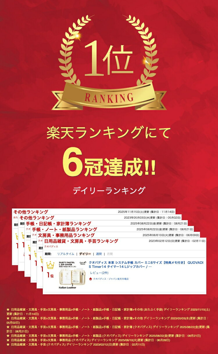 クオバディス 本革 システム手帳 カバー ミニ6サイズ QUOVADIS Timer14 タイマー14 Lジップカバー / ダスティパステル ミニ6 牛革 おしゃれ かわいい 手帳カバー 女性 LZIP 公式