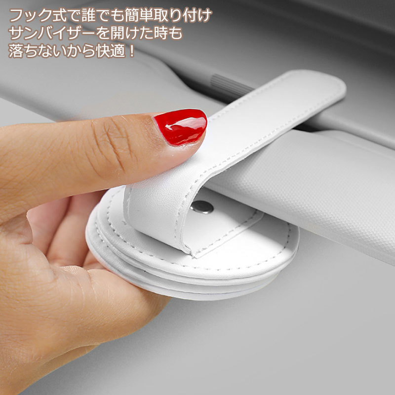 素材:PUレザー クリップはサンバイザー等に固定し、メガネやサングラス、カード、名詞、領収書、高速券などをクリップできます。 今まで置き場所に困っていたものが楽に収納でき、邪魔になりません。 ※画像は実物の色をできるだけ表示するようにしていますが、多少本物のカラーと違うことがあるかもしれません。ご了承下さい。