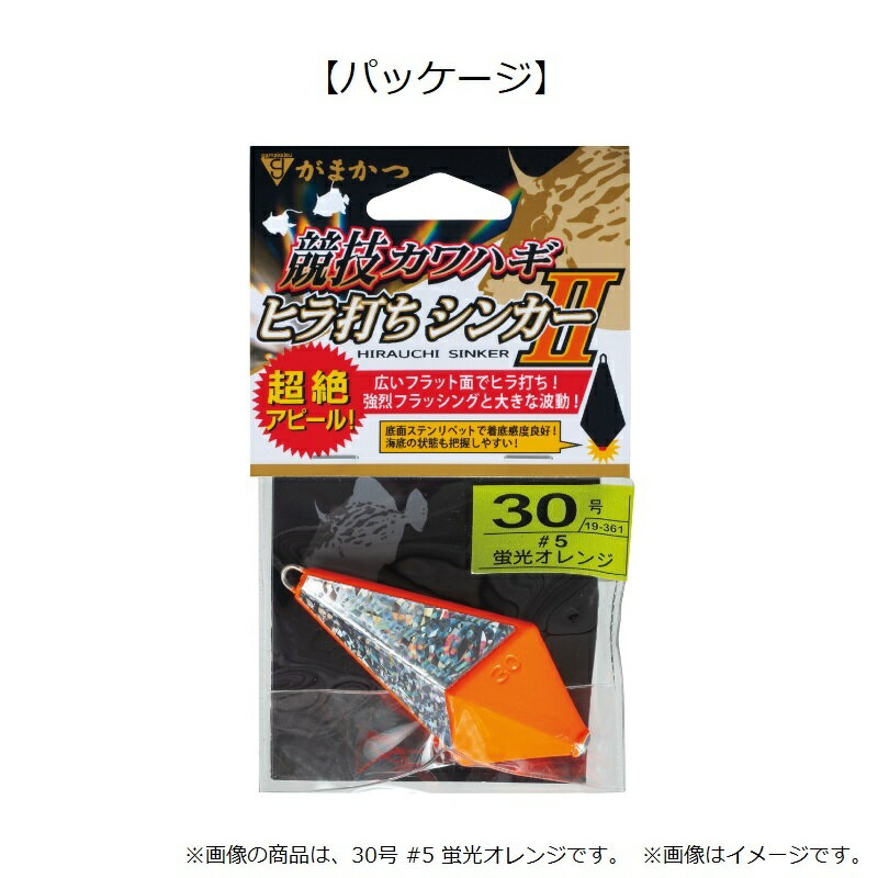 商品説明“競技”の名にふさわしいカワハギ専用シンカー!水切りの良いフォルムと大きなフラット面が、キレの良いヒラ打ちと強烈なフラッシング効果を生みだします。また、底部のステンレス・リベットが着底感度を増し、底質の感知能力も抜群です。■広いフラット面でヒラ打ちアクション!強烈フラッシングと大きな波動で超絶アピール!■底面のステンリベットで着底感度良好!海底の状態も伝わりやすく、把握しやすい!シンカーの塗装も保護します。Gamakatsuがまかつ 競技カワハギ ヒラ打ちシンカーII●品名コード:19-360●号数:25号●カラー:#2 ケイムラ夜光●入数:1個詳細はこちら