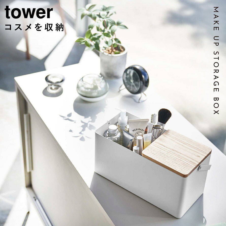 メイクボックス タワー 山崎実業 tower コスメボックス 木製 鏡付き コスメ メイク道具 収納 持ち運び おしゃれ モノトーン ホワイト ブラック 5453 5454