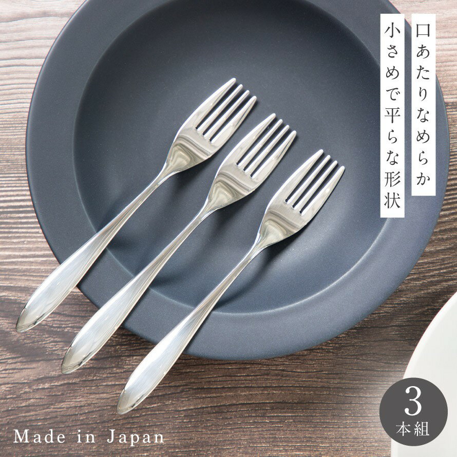 燕三条 フォーク 3本組 セット ステンレス パスタ カトラリー ミディアムフォーク 食べやすい 薄い 口あたり良い 日本製 食洗機対応 小さめ おしゃれ シンプル 高級 TSUBAME ミディアムフォーク 3本組 デザートフォーク
