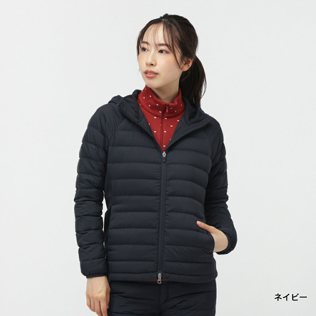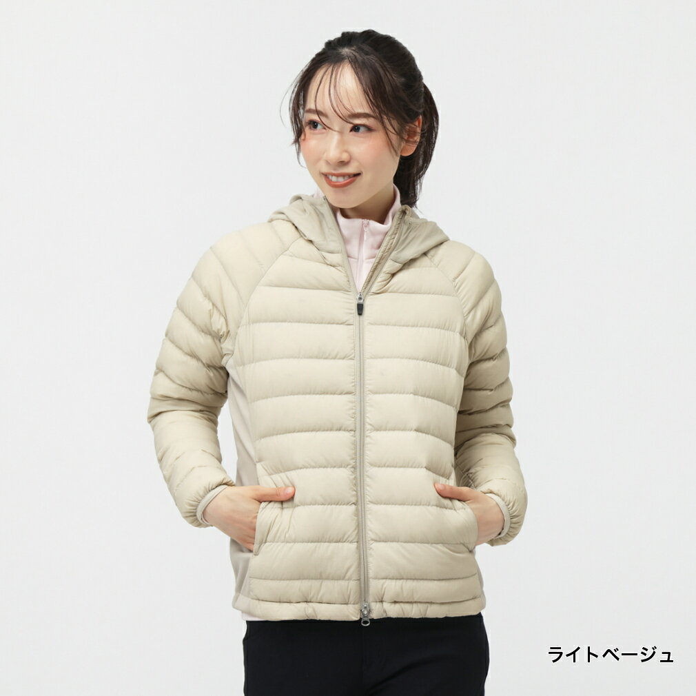 ◇着用したままでもスイングがしやすいダウンジャケット.700フィルパワーのホワイトダックダウンを使用。優れた嵩高性により、高い保温力を発揮する高品質ダウンです。(一般的に、550フィルパワー以上が良質なダウンと評価されています)撥水・防風機能も備えており、軽い雨天時にも使用可能。風を防いで暖かさを保ちます。脇部分にストレッチ素材を使用し、動きやすさを追求しました。◇機能:撥水・UVカット・防風■カラー:ネイビーライトベージュ■素材:本体/ナイロン100% 別布/ポリエステル100% 中わた/ダウン90% フェザー10%■生産国:ミャンマー■2025秋冬モデル■標準対応サイズM:対象身長/154-162cm 対象胸囲/79-87cmL:対象身長/154-162cm 対象胸囲/86-94cmXL(LL・O):対象身長/154-162cm 対象胸囲/93-101cm2XL:対象身長/154-162cm 対象胸囲/100-108cmサイズM レディスL レディスXL レディス2XL レディス着丈62cm63cm64cm65cm裄丈79cm80cm82cm83cm身幅52cm55cm59cm62cmGORA ゴーラ ごーら ゴルフ ゴルフウェア ダウンジャケット ブレーカー 秋冬 レディース レディ LD