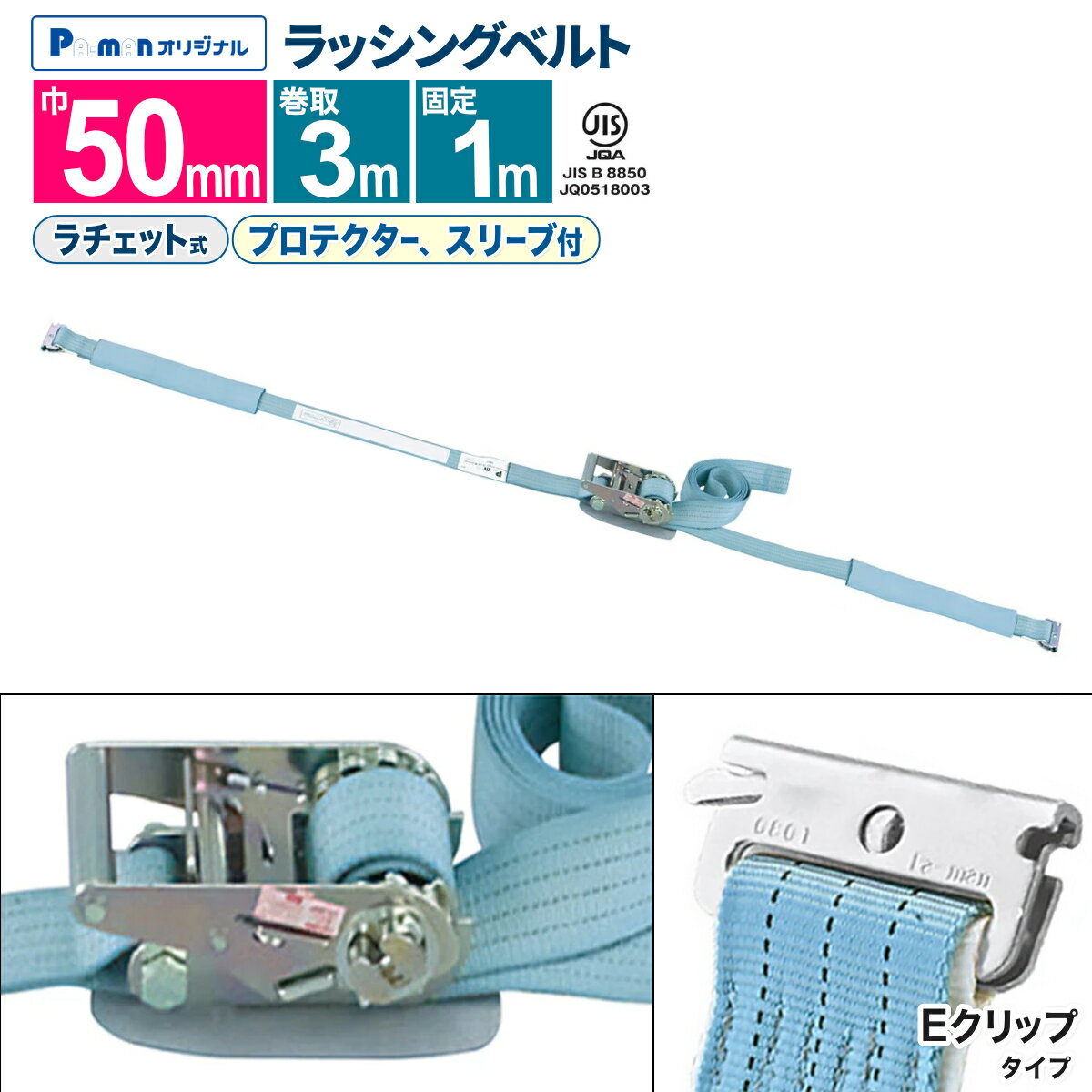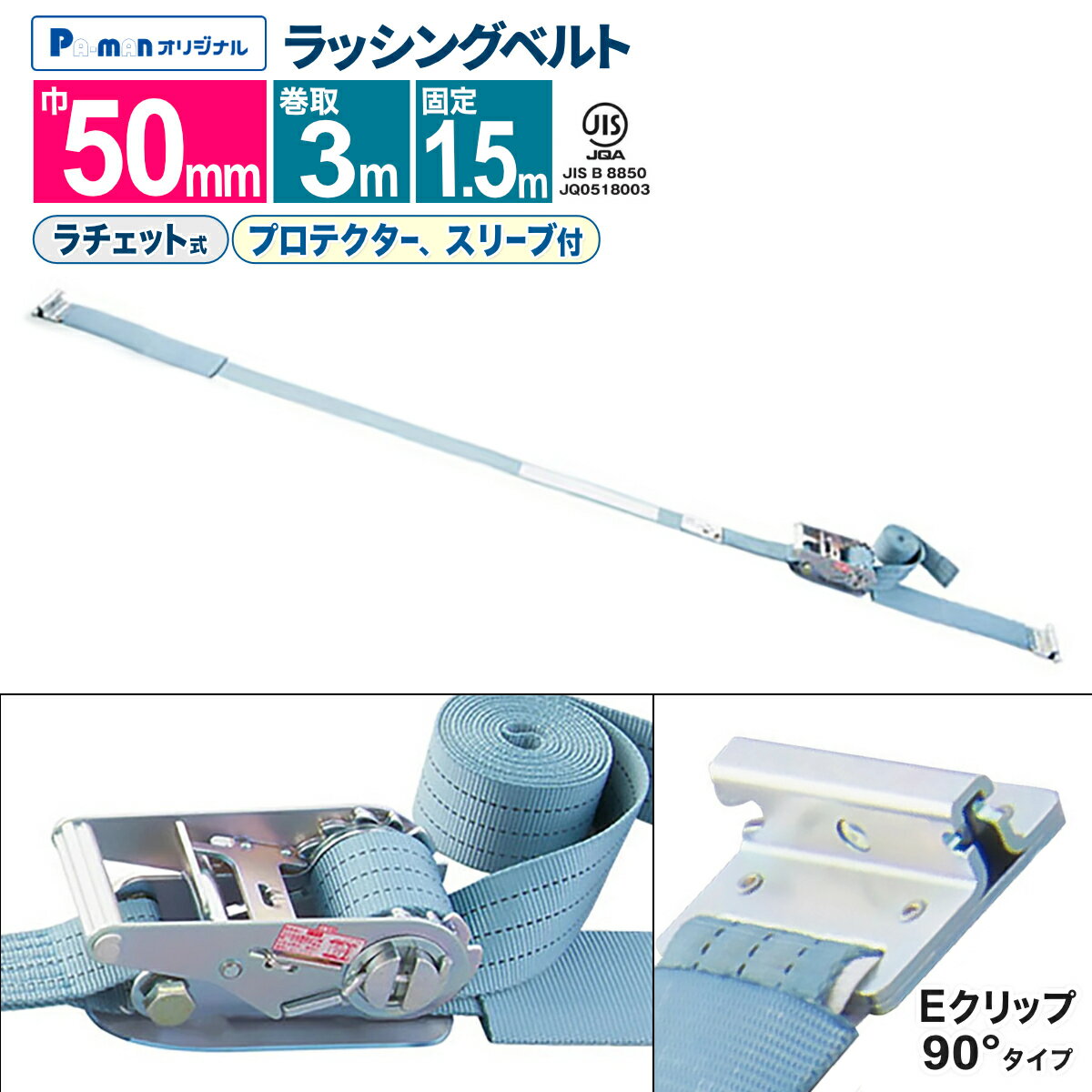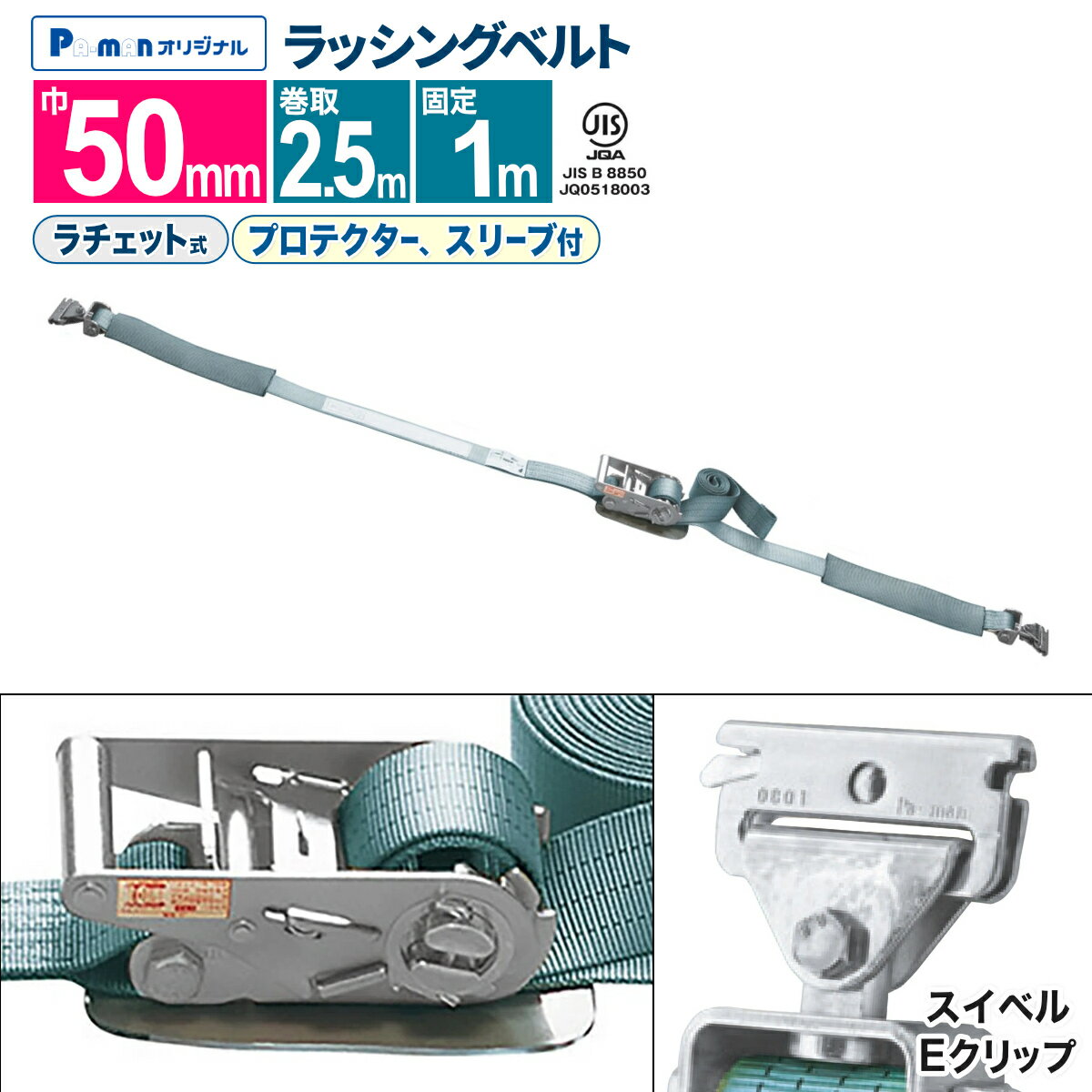 カムバックル式ラウンドタイプの荷締めベルト、扱い易いバックルと柔軟強度な繊維ベルトで荷に優しくワンタッチで荷締め作業ができます。荷物の結束・固定に大人気の「FREAK荷締めベルト NBA25NT250 シリーズ」使用頻度も高く安価で何度も使えるおすすめのラッシングベルトです。【仕様】・商品名:FREAK荷締めベルト青・型式:NBA25NT250・バックル形状:カム式・先端形状:エンドレス・最大使用荷重:250kgf・破断荷重:500kgf・安全係数:2(最大使用荷重×2=破断荷重)・ベルトサイズ:幅25mm×長さ2m・ベルト材質:ポリエステル100%・欧州CE規格+GS&TUVマーク取得商品・生産物賠償責任保険(PL保険)付・販売元:株式会社フリーク【用途】製品の結束や固定はもちろん、自転車・スポーツ用品・アウトドア用品などの軽量物の荷崩れ防止にも最適。近年発生の多い地震やゲリラ豪雨・台風の安全対策グッズとしてもお勧めです。【安全上のご注意】1、誤った操作や日頃の点検を怠れば、荷の落下など危険な状態になります。2、使用方法・使用荷重を考慮し、余裕のある製品を選定してください。3、本製品で玉掛作業はできません。4、本製品は、化学薬品用ならびに耐熱用ではありません。5、付属の説明書をいつでも読めるように保管し、熟読してからご使用ください。6、注意事項を守らず、誤った使用上の事故や損害について、当社は一切の責任を負いません。