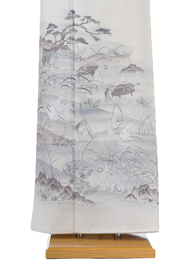 着物 レンタル 七五三 母 親 訪問着 レンタル フルセット 着物 レンタル 七五三 着物 結婚式 七五三 お宮参り 往復送料無料 化繊【鳥獣戯画】白 150cm 155cm 160cm kt6426 モダン 幾何学【レンタル】