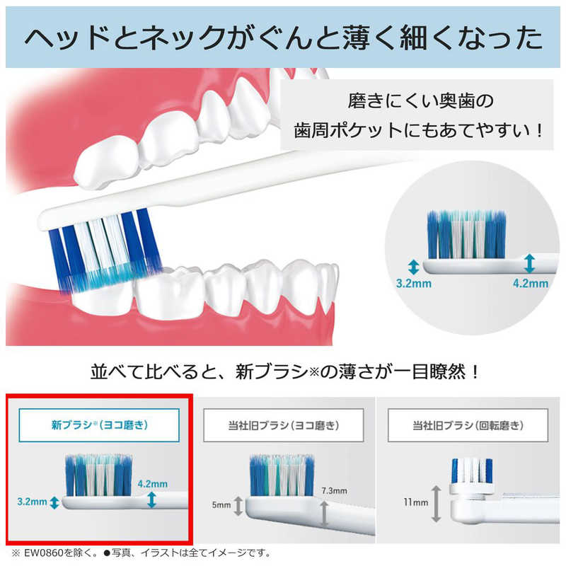 【商品解説】ドルツ用極細毛ブラシ(コンパクト)(2本入) EW0800−W 白【対応機種】EW−DT51、EW−CDP54、EW−CDP34、EW−DA44、EW−DL56、EW−DL36※ご購入の際は、対応機種をご確認ください。【スペック】●型式:EW0800-W(EW0800W)●JANコード:4549980443408入数:2本入交換目安:3ヶ月この商品は宅配便でお届けする商品です出荷可能日から最短日時でお届けします。※出荷完了次第メールをお送りします。配送サービス提供エリアを調べることができます「エリア検索」をクリックして、表示された画面にお届け先の郵便番号7桁を入力してください。ご購入可能エリア検索お買い上げ合計3,980円以上で送料無料となります。※3,980円未満の場合は、一律550円(税込)となります。●出荷可能日から最短日時でお届けします。(日時指定は出来ません。) ※お届け時に不在だった場合は、「ご不在連絡票」が投函されます。 「ご不在連絡票」に記載された宅配業者の連絡先へ、再配達のご依頼をお願いいたします。●お届けは玄関先までとなります。●宅配便でお届けする商品をご購入の場合、不用品リサイクル回収はお受けしておりません。●全て揃い次第の出荷となりますので、2種類以上、または2個以上でのご注文の場合、出荷が遅れる場合があります。詳細はこちら■商品のお届けについて商品の到着日については、出荷完了メール内のリンク(宅配業者お荷物お問い合わせサービス)にてご確認ください。詳しいお届け目安を確認する1度の注文で複数の配送先にお届けすることは出来ません。※注文時に「複数の送付先に送る」で2箇所以上への配送先を設定した場合、すべてキャンセルとさせていただきます。