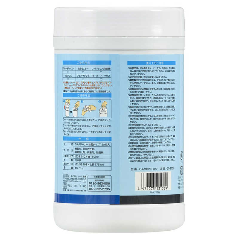 オーム電機 OAクリーナー 除菌タイプ 120枚入り OffiStyle OA-MDP80BF
