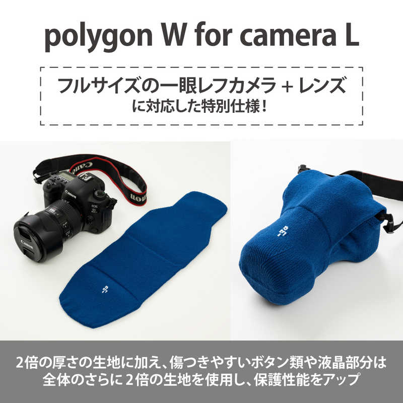 【商品解説】_go polygon W for camera Lは、フルサイズの一眼レフカメラ+レンズに対応した特別仕様!大きなカメラとレンズを、ストラップから下げたままピッタリと包むことができます。【スペック】●型式:G03PCLBL(G03PCLBL)●JANコード:4570101900333仕様1:サイズ:横16cm × 縦46cm※製品の特性上、サイズは多少前後します。仕様2:素材:ポリエステル99%、ポリウレタン1%仕様3:収納の目安:フルサイズの一眼レフカメラ+レンズなど例1:ボディ:SONY α7R Vレンズ:SONY FE 24-70mm F2.8GM例2:ボディ:CANON EOS 5D Mark IVレンズ:CANON EF24-105mm F4L IS II USM例3:ボディ:CANON EOS 5D Mark IVレンズ:CANON EF50mm F1.2L USM例4:ボディ:FUJIFILM X-T3レンズ:FUJIFILM XF16 -80mm F4 R OIS WRこの商品は宅配便でお届けする商品です出荷可能日から最短日時でお届けします。※出荷完了次第メールをお送りします。配送サービス提供エリアを調べることができます「エリア検索」をクリックして、表示された画面にお届け先の郵便番号7桁を入力してください。ご購入可能エリア検索お買い上げ合計3,980円以上で送料無料となります。※3,980円未満の場合は、一律550円(税込)となります。●出荷可能日から最短日時でお届けします。(日時指定は出来ません。) ※お届け時に不在だった場合は、「ご不在連絡票」が投函されます。 「ご不在連絡票」に記載された宅配業者の連絡先へ、再配達のご依頼をお願いいたします。●お届けは玄関先までとなります。●宅配便でお届けする商品をご購入の場合、不用品リサイクル回収はお受けしておりません。●全て揃い次第の出荷となりますので、2種類以上、または2個以上でのご注文の場合、出荷が遅れる場合があります。詳細はこちら■商品のお届けについて商品の到着日については、出荷完了メール内のリンク(宅配業者お荷物お問い合わせサービス)にてご確認ください。詳しいお届け目安を確認する1度の注文で複数の配送先にお届けすることは出来ません。※注文時に「複数の送付先に送る」で2箇所以上への配送先を設定した場合、すべてキャンセルとさせていただきます。