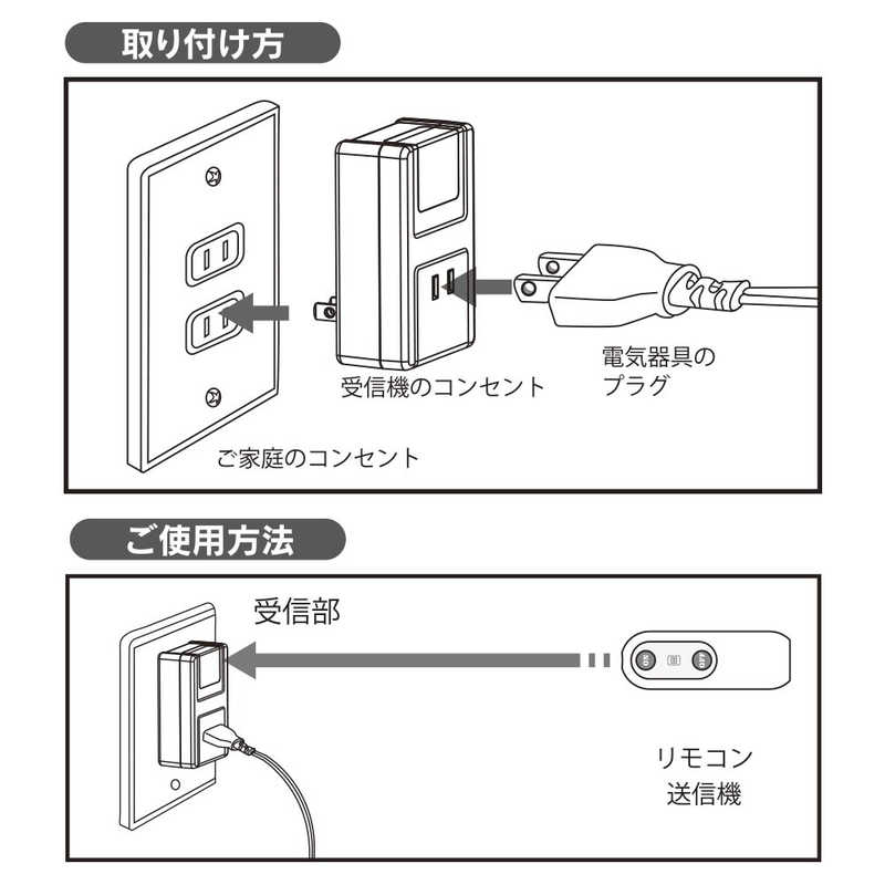 【商品解説】【 特 長 】● 赤外線リモコンにより離れた所から電気器具をON/OFF● コンセントに受信機を差し込み、使用する電気器具のプラグを受信機に差し込むだけですぐ使えます● 最大800Wまで使用可能● 換気扇・電気スタンドなどに使用できます【 仕 様 】≪受信機本体≫● 入力:AC100V● 容量:最大800Wまで(最大電流8A以下)● 外形寸法:幅58×高さ89×奥行29mm(電源プラグを除く)● 質量:約88g≪リモコン送信機≫● 使用電池:単4形乾電池×2本(別売)● 外形寸法:幅45×高さ132×奥行14mm● 有効距離:約5m(障害物のない場合)● 質量:約33g【ご注意】※ ドライヤーや暖房器具などの電熱器具、パソコンなどの精密機器には使用できません。【スペック】●型式:OCR-RCT01W(OCRRCT01W)●JANコード:4971275787780仕様1:容量:最大800Wまで(最大電流8A以下)この商品は宅配便でお届けする商品です出荷可能日から最短日時でお届けします。※出荷完了次第メールをお送りします。配送サービス提供エリアを調べることができます「エリア検索」をクリックして、表示された画面にお届け先の郵便番号7桁を入力してください。ご購入可能エリア検索お買い上げ合計3,980円以上で送料無料となります。※3,980円未満の場合は、一律550円(税込)となります。●出荷可能日から最短日時でお届けします。(日時指定は出来ません。) ※お届け時に不在だった場合は、「ご不在連絡票」が投函されます。 「ご不在連絡票」に記載された宅配業者の連絡先へ、再配達のご依頼をお願いいたします。●お届けは玄関先までとなります。●宅配便でお届けする商品をご購入の場合、不用品リサイクル回収はお受けしておりません。●全て揃い次第の出荷となりますので、2種類以上、または2個以上でのご注文の場合、出荷が遅れる場合があります。詳細はこちら■商品のお届けについて商品の到着日については、出荷完了メール内のリンク(宅配業者お荷物お問い合わせサービス)にてご確認ください。詳しいお届け目安を確認する1度の注文で複数の配送先にお届けすることは出来ません。※注文時に「複数の送付先に送る」で2箇所以上への配送先を設定した場合、すべてキャンセルとさせていただきます。