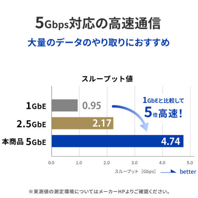 【商品解説】「GP-CR455GH/S」は5GbEに対応したUSB-C(USB Type-C)接続の有線LANアダプターです。本商品を使うことで、動画編集やデータバックアップ等、大容量データのやり取りを快適に行えます。また、10G光回線のネットワーク環境構築にも最適です。※本商品はGOPPA社製商品のアイ・オー・データ取り扱い商品となります。●5Gbps対応の高速通信 Gigabit(1Gbps)よりもさらに高速な5Gbps(理論値)に対応。動画編集やデータバックアップ、10G光回線のネットワーク環境構築等、大容量データをやり取りする用途に最適です。※実測値の測定環境についてはメーカーホームページの仕様ページをご確認ください。※5Gbpsでの通信をご利用いただくには、ネットワーク経路上の機器が10GbEに対応している必要があります。●iPhone16シリーズ/iPhone15シリーズ/iPad Proに対応! iPhone16シリーズ/iPhone15シリーズ/iPad Proに対応。有線接続を使用すると、大量のデータのやり取りやゲームプレイを低遅延で快適に行えます。※iPhone15/15 Plus/16/16 Plusは最大通信速度が1000BASE-T(1000Mbps)となります。iPhone15 Pro/15 Pro Max/16 Pro/16Pro Maxのみ5GBASE-T(5Gbps)に対応。※iPad ProはUSB Cポートを搭載した機種に限ります。●ゲーミング用途に 有線LANで接続することにより、無線LANよりも低遅延でゲームをプレイできます。FPS等、ネットワークの遅延が大きな影響を及ぼすゲームには有線LAN接続がおすすめです。【スペック】●型式:GP-CR455GH/S(GPCR455GHS)●JANコード:4589785196352形状:USB-C → LAN規格:USB3.2仕様1:[USBインターフェイス] USB-Cコネクタ オス ×1 ・USB 10Gbps (USB3.2 Gen2)/USB2.0 (480Mbps)[LANインターフェイス] RJ-45×1ポート[有線LAN規格] IEEE802.3bz(5GBASE-T、2.5GBASE-T) IEEE802.3ab(1000BASE-T) IEEE802.3u(100BASE-TX) IEEE802.3i(10BASE-T) ※転送速度はUSBインターフェイスの通信速度に依存します仕様2:[伝送速度(理論値)] 5Gbps/2.5Gbps/1000Mbps/100Mbps/10Mbps[ジャンボフレーム] 最大16128bytes(初期値無効) ※ジャンボフレームはWindowsでのみご利用頂けます。[対応LANケーブル] カテゴリ6以上(5GBASE-T使用時) カテゴリ5e以上(2.5GBASE-T/1000BASE-T/100BASE-TX/10BASE-T使用時)仕様3:[対応OS]Windows 11/10(32bit/64bit)※1 ※2macOS 10.9〜10.15、macOS 11〜15以降 ※3iOS 17.2以降/iPadOS 17.2以降 ※4※1:Windows 10(Sモード)には対応していません。※2:ARMベースのPCには対応していません。※3:M3/M2/M1およびIntel CPUに対応。PowerPC CPUは非対応。※4:iOS/iPadOS は最新版のOSをお使いください。この商品は宅配便でお届けする商品です出荷可能日から最短日時でお届けします。※出荷完了次第メールをお送りします。配送サービス提供エリアを調べることができます「エリア検索」をクリックして、表示された画面にお届け先の郵便番号7桁を入力してください。ご購入可能エリア検索お買い上げ合計3,980円以上で送料無料となります。※3,980円未満の場合は、一律550円(税込)となります。●出荷可能日から最短日時でお届けします。(日時指定は出来ません。) ※お届け時に不在だった場合は、「ご不在連絡票」が投函されます。 「ご不在連絡票」に記載された宅配業者の連絡先へ、再配達のご依頼をお願いいたします。●お届けは玄関先までとなります。●宅配便でお届けする商品をご購入の場合、不用品リサイクル回収はお受けしておりません。●全て揃い次第の出荷となりますので、2種類以上、または2個以上でのご注文の場合、出荷が遅れる場合があります。詳細はこちら■商品のお届けについて商品の到着日については、出荷完了メール内のリンク(宅配業者お荷物お問い合わせサービス)にてご確認ください。詳しいお届け目安を確認する1度の注文で複数の配送先にお届けすることは出来ません。※注文時に「複数の送付先に送る」で2箇所以上への配送先を設定した場合、すべてキャンセルとさせていただきます。