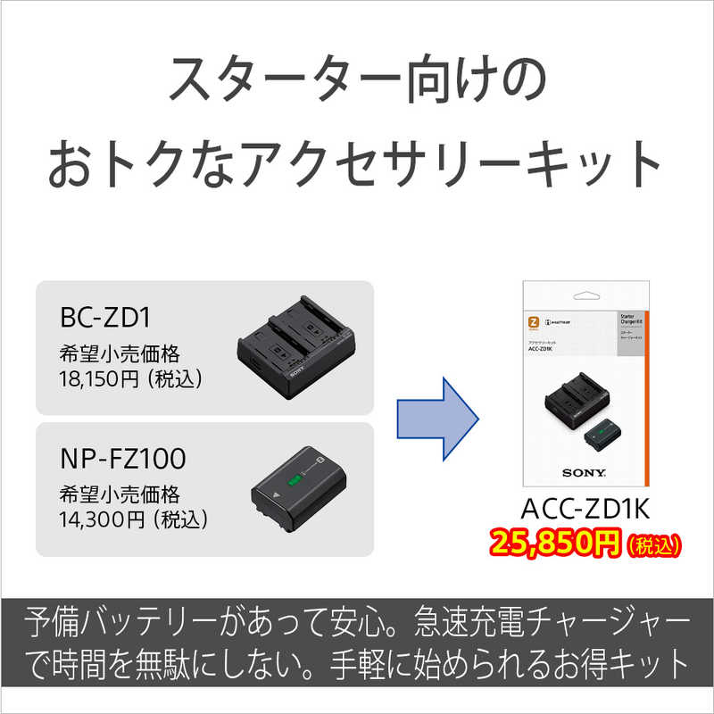 ソニー SONY チャージャー「BC-ZD1」とバッテリー「NP-FZ100」をセットにしたお得なキット ACC-ZD1K