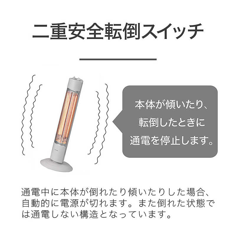 【商品解説】●0.2秒で立ち上がるグラファイトヒーター搭載 寒い冬でもすぐに暖まるので便利です。●置き場所をとらないスリムな縦型 スリムな形状とホワイト色の効果で、物理的にも視覚的にも圧迫感が少なく、狭いお部屋でも置きやすい●450/900W2段階切替、自動首振り機能搭載 首振り機能が付いているので、一人で使うときも複数人で使うときも便利・消費電力:900W・電力切替スイッチ:900W/450W/切・コード長:約1.8m・タイマー:最長約3時間切タイマー・首振り:◯・二重安全転倒スイッチ:◯・本体サイズ:約300(W)×300(D)×825(H)mm・本体質量:約2.7kg【スペック】●型式:KKS-09257/W(KKS09257W)●JANコード:4981747085726本体サイズ(高さ×幅×奥行):825×300×300mm本体重量:2700g電源コード長:1.8m消費電力:900Wタイマー:有加湿機能:無電力切換:900W/450W首振り機能:有この商品は宅配便でお届けする商品です出荷可能日から最短日時でお届けします。※出荷完了次第メールをお送りします。配送サービス提供エリアを調べることができます「エリア検索」をクリックして、表示された画面にお届け先の郵便番号7桁を入力してください。ご購入可能エリア検索お買い上げ合計3,980円以上で送料無料となります。※3,980円未満の場合は、一律550円(税込)となります。●出荷可能日から最短日時でお届けします。(日時指定は出来ません。) ※お届け時に不在だった場合は、「ご不在連絡票」が投函されます。 「ご不在連絡票」に記載された宅配業者の連絡先へ、再配達のご依頼をお願いいたします。●お届けは玄関先までとなります。●宅配便でお届けする商品をご購入の場合、不用品リサイクル回収はお受けしておりません。●全て揃い次第の出荷となりますので、2種類以上、または2個以上でのご注文の場合、出荷が遅れる場合があります。詳細はこちら■商品のお届けについて商品の到着日については、出荷完了メール内のリンク(宅配業者お荷物お問い合わせサービス)にてご確認ください。詳しいお届け目安を確認する1度の注文で複数の配送先にお届けすることは出来ません。※注文時に「複数の送付先に送る」で2箇所以上への配送先を設定した場合、すべてキャンセルとさせていただきます。