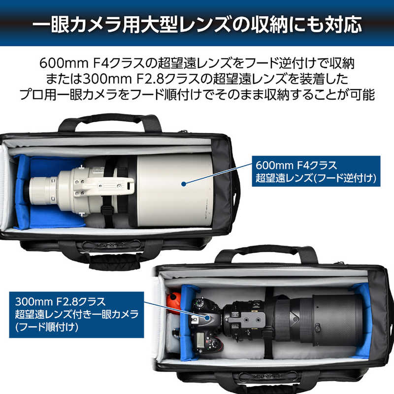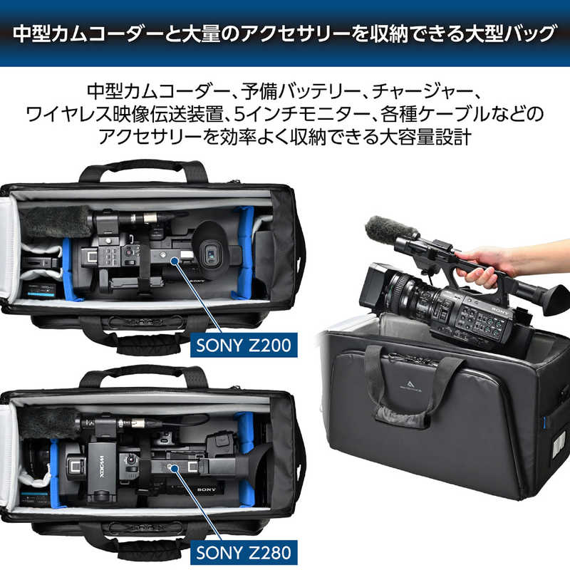 【商品解説】プロフェッショナルな撮影を支える大容量カムコーダーバッグ 中型カムコーダーと周辺アクセサリーを効率的に収納できる、プロの現場での使いやすさを追求した大容量ショルダーバッグです。機内持ち込みサイズに対応する無駄のないスクエアデザインに、6面すべてに厚みのあるクッション材とボード材を内蔵した堅牢な構造が機材をしっかりと保護します。大きな開口部は機材を一覧しやすいだけでなく、カメラをすばやくスムーズに出し入れ可能。また、水に強い生地素材と止水ファスナーを採用しているため、急な天候変化に見舞われる屋外ロケでも安心して持ち運べます。※水の侵入を完全に防ぐものではありません。【スペック】●型式:SGWATK-CSB27(SGWATKCSB27)●JANコード:4977187209327容量:25〜30L内寸(mm):カメラ収納部内寸法 : 約W510×H270×D200mm外寸(mm):外寸法 : 約W540×H290×D250mm本体重量:重量 :約2600g付属品:付属品 :中仕切り×7、機材固定ベルト、ショルダーベルト材質:材質 : PUコーティングポリエステル、ポリエステル、ターポリン収納の目安:中型カムコーダー、予備バッテリー、チャージャー、ワイヤレス映像伝送装置、5インチモニター、各種ケーブルなどこの商品は宅配便でお届けする商品です出荷可能日から最短日時でお届けします。※出荷完了次第メールをお送りします。配送サービス提供エリアを調べることができます「エリア検索」をクリックして、表示された画面にお届け先の郵便番号7桁を入力してください。ご購入可能エリア検索お買い上げ合計3,980円以上で送料無料となります。※3,980円未満の場合は、一律550円(税込)となります。●出荷可能日から最短日時でお届けします。(日時指定は出来ません。) ※お届け時に不在だった場合は、「ご不在連絡票」が投函されます。 「ご不在連絡票」に記載された宅配業者の連絡先へ、再配達のご依頼をお願いいたします。●お届けは玄関先までとなります。●宅配便でお届けする商品をご購入の場合、不用品リサイクル回収はお受けしておりません。●全て揃い次第の出荷となりますので、2種類以上、または2個以上でのご注文の場合、出荷が遅れる場合があります。詳細はこちら■商品のお届けについて商品の到着日については、出荷完了メール内のリンク(宅配業者お荷物お問い合わせサービス)にてご確認ください。詳しいお届け目安を確認する1度の注文で複数の配送先にお届けすることは出来ません。※注文時に「複数の送付先に送る」で2箇所以上への配送先を設定した場合、すべてキャンセルとさせていただきます。