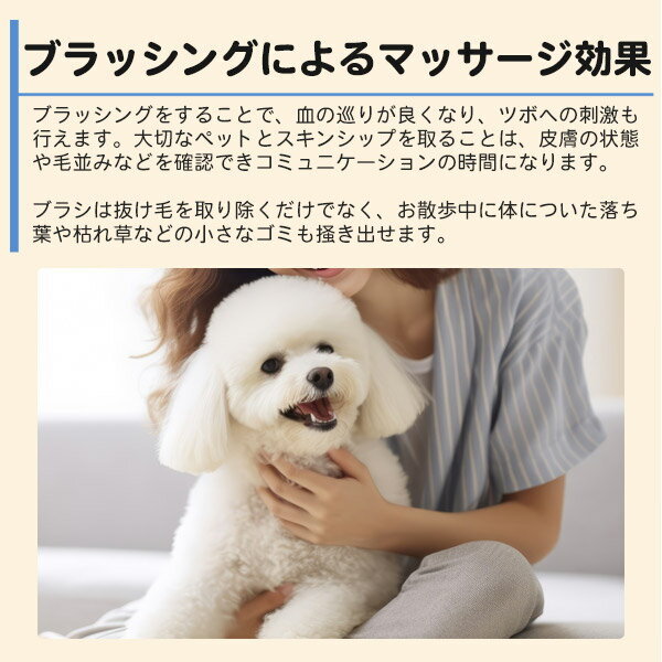 スリッカーブラシ(くの字・ソフトタイプ) わんちゃん・ねこちゃん用のペットブラシです。 ブラッシングをすることで、血の巡りが良くなり、ツボへの刺激も行えます。 大切なペットとスキンシップを取ることは、 皮膚の状態や毛並みなどを確認できコミュニケーションの時間になります。 ブラシは抜け毛を取り除くだけでなく、 お散歩中に体についた落ち葉や枯れ草などの小さなゴミも掻き出せます。 握りやすく滑りにくいグリップハンドルです。 先端が丸くなった高密度のピンで、お肌を傷つけずに根本から優しくブラッシングできます。 使用後はボタンを親指で押すだけでブラシの面がピン先まで押し上げられ、 抜け毛を取り除けるためゴミ捨てに手間取りません。 ピンク・グレー・ブルーの3色からお選びいただけます。 製品仕様 サイズ(約) 幅182×奥行97×高さ53mm 重量(約) 100g 材質 ABS樹脂、ステンレス 注意 ※海外輸入品のため、多少の傷や汚れはご了承の上でお買い求め下さい。 ※ペットのお肌に傷がある際は使用をお控えください。 ※長毛種・短毛種のどちらでもお使いいただけます。スリッカーブラシ(くの字・ソフトタイプ) わんちゃん・ねこちゃん用のペットブラシです。 ブラッシングをすることで、血の巡りが良くなり、ツボへの刺激も行えます。 大切なペットとスキンシップを取ることは、 皮膚の状態や毛並みなどを確認できコミュニケーションの時間になります。 ブラシは抜け毛を取り除くだけでなく、 お散歩中に体についた落ち葉や枯れ草などの小さなゴミも掻き出せます。 握りやすく滑りにくいグリップハンドルです。 先端が丸くなった高密度のピンで、お肌を傷つけずに根本から優しくブラッシングできます。 使用後はボタンを親指で押すだけでブラシの面がピン先まで押し上げられ、 抜け毛を取り除けるためゴミ捨てに手間取りません。 ピンク・グレー・ブルーの3色からお選びいただけます。 製品仕様 サイズ(約) 幅182×奥行97×高さ53mm 重量(約) 100g 材質 ABS樹脂、ステンレス 注意 ※海外輸入品のため、多少の傷や汚れはご了承の上でお買い求め下さい。 ※ペットのお肌に傷がある際は使用をお控えください。 ※長毛種・短毛種のどちらでもお使いいただけます。