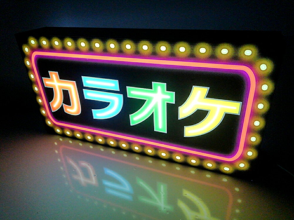 商品情報 サイズ 縦200mm×横400mm 厚み70mm 電源コード(2M)材質 アクリルデザインシート 裏板アルミ複合板色 カラー色商品説明 目に優しくネオンのように光る新感覚デザインライトです!! 見た目そのままのカラオケ!!昔懐かしいレトロイメージとなっております! カラオケ好き様やカラオケ店様向きデザインのLEDデザインライトです。 お店のカウンターや窓際、お店のインテリアにどうぞ!!注意書き モニターの発色具合によって実際の商品と色が異なる場合がございます。LEDデザインライト お店やご自宅が変わります!!LEDライトボックス!! 2