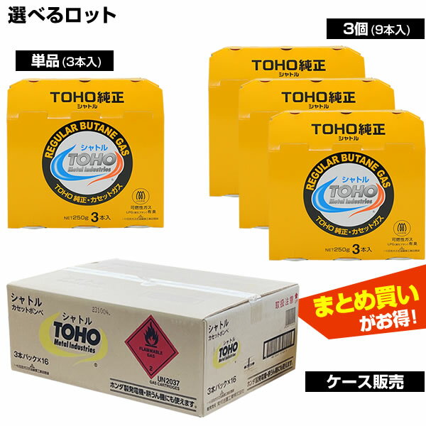 ガスボンベ トーホー シャトル カセットボンベ 3本組 単品/まとめ買い3セット/ケース販売 | TOHO カセットガスボンベ 鍋 カセットコンロ 卓上コンロ アウトドア 災害用 燃料 CB缶 耕運機