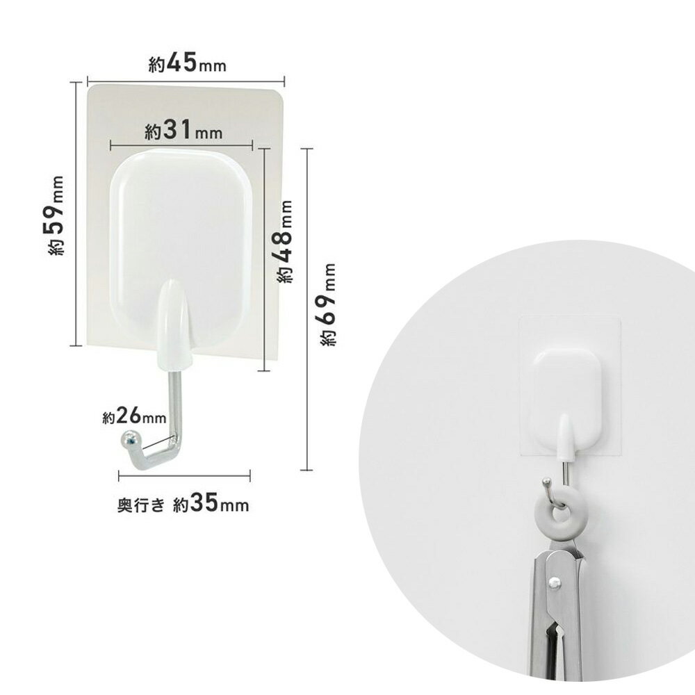 吸着シートフックワイド ホワイト 2個入 H-419 | 貼ってはがせる 吸着シール 吊り下げ 吊下げ フック収納