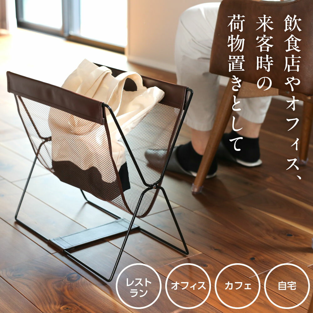 カフェやホテルにピッタリの荷物置き!あると嬉しい!手荷物やバッグを床置きしないメッシュバスケット。荷物の収納はもちろん、マガジンラックとしても使用できます。ホテルや飲食店はもちろん、ご家庭でのちょっとした小物収納にも便利。使わないときは、折りたたんでスリムに収納できます。ブラックとブラウンの2色のカラーからお選びいただけます。ご注意ご使用の際に、上から勢いよく力を加えるとスタンドが規定の幅以上に開いてしまい、スタンドが破損するおそれがありますので十分ご注意ください。※商品詳細を全て選択すると「商品仕様」が表示されます関連キーワード: バスケット 荷物入れ 収納 メッシュ マガジンラック 玄関収納 玄関 折り畳み 手荷物 持ち手 コンパクト 持ち運び 荷物 小物 一時置き スマート 雑誌 本 スタイリッシュ レザー調 通気性 高級感 リビング ソファ横 テーブル横 ランドセル ビジネスバッグ 通勤 通学 バッグ バック カバン 鞄 マガジンスタンド 約 幅47 奥行20 高さ41 センチ cm 床 直接 置きたくない 店舗 飲食店