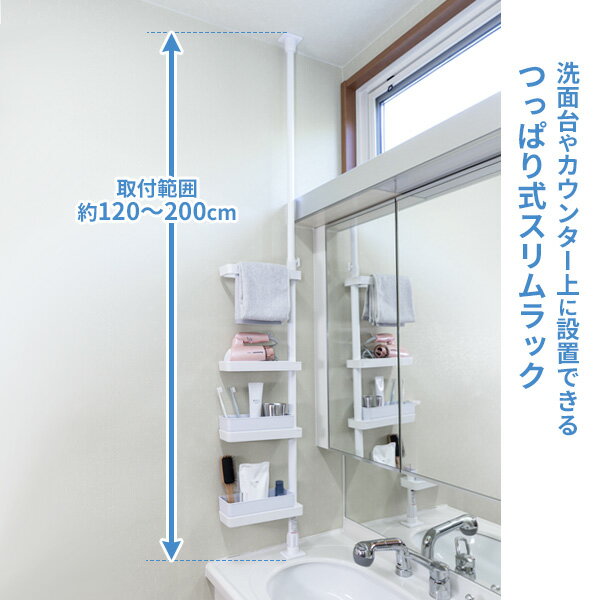 セキスイ つっぱり式スリムラック ホワイト TSR-SW | ランドリーラック 小物ラック つっぱり棒 突っ張り式 壁際 収納 洗濯機 収納 洗面所 簡単 玄関 キッチン カウンター
