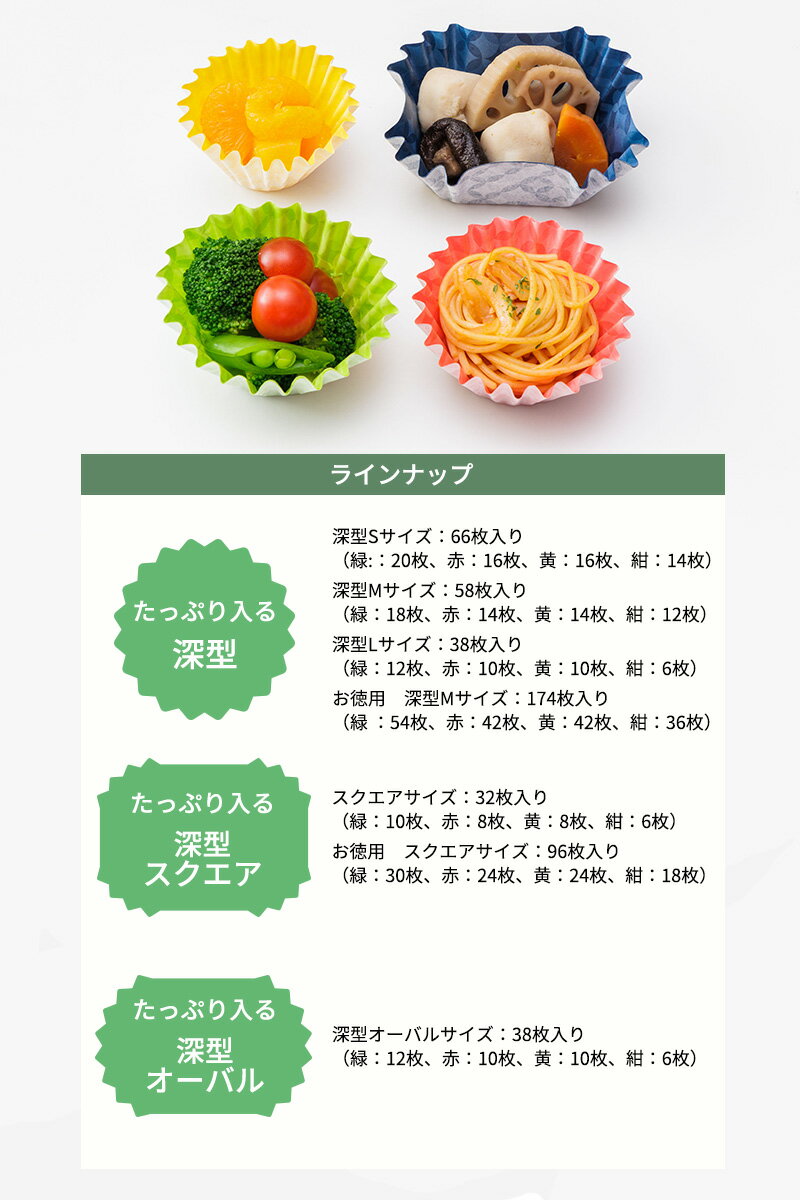 お弁当カップ お徳用3倍!抗菌深いぃおべんとうカップ 深型M 4色 174枚 1873 | 日本製 おかずカップ 小分け 抗菌加工 電子レンジ・オーブンOK 深型 使い捨て お徳用 惣菜カップ たっぷり入る