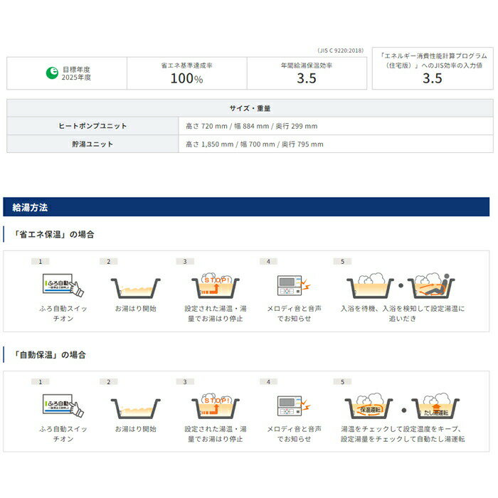 ※お客様のご都合による商品の返品・交換・キャンセルは受け付けておりません。 商品仕様をご確認の上、お間違いの無いようお願い致します。 ※型番通りのお手配になりますのでご注文前に必ず商品の仕様・サイズ・型番・色等を確認の上ご注文お願いします。 当店のお買い物ガイドも併せてご確認ください。 ◆メーカー:コロナ ◆品名:エコキュート 460Lフルオート角型高圧 ハイグレードタイプインターホンリモコンセット+脚カバー ◆品番:CHP-E46AZ1+CTU-FC29 (CHPE46AZ1+CTUFC29) ◆セット構成内容 ・インターホンリモコンセット:CHP-E46AZ1 ・脚カバー:CTU-FC29 ◆高圧力パワフル給湯 ◆入浴お知らせ(音声モニター付) ◆省エネ保温 ◆スマートナビリモコンプラス ◆アプリ対応 ◆ソーラーモードプラス◆沖縄県は配送不可となります。ご了承下さい。 【メーカー直送の注意事項について】 ◆メーカー直送品のため、代引き決済はご利用いただけません。 ◆北海道・沖縄・離島は配送不可地域となります。 ◆土・日・祝日の配送は不可となります。 ◆必ず配達希望日のご指定をお願い致します。 ※当店3営業日以降で指定(土日祝は休みです。) 配達希望日を土日祝でご指定された場合は 最短の平日到着日に変更いたしますので、ご了承ください。 ※ご指定頂いたお日にちにお届けできない場合 (土日祝のご指定や3営業日未満でのご指定など) 当店より配達希望日変更のお願いを メールまたはお電話をさせて頂きますので、必ずご確認ください。 下記の項目は全て指定不可です。 ・時間指定 ・午前や午後等の指定 指定されても承ることができません。 ◆商品は、車上渡しとなります。 ◆連絡先は、日中連絡が取れる携帯番号をご記入ください。 ◆配達時不在の場合は、再配達料が必要となります。 配達日にはご在宅の上、お受け取りのご準備を宜しくお願い致します。 ◆置き配は不可となります。 ※ご注文の混み具合よりご指定の配達希望日へお届けできない場合がございます。 その際はメールにて変更後のお届け日をご連絡致しますので、 ご注文後は必ず当店からのメールをご確認ください。 ◆商品納入時に梱包の凹み、破損等がないかを 必ずご確認ください。納品時確認後の破損及びクレームは お受けできませんのでご注意ください。 ※発送予定日はメーカー在庫がある場合の納期となっております。 ※井戸水は使用できません。