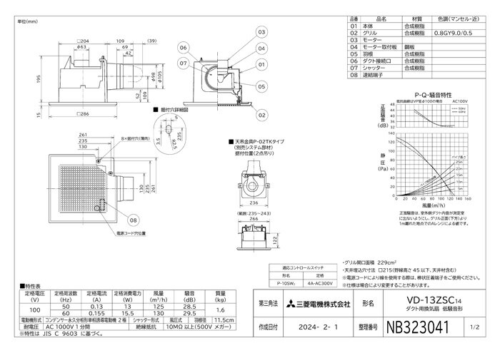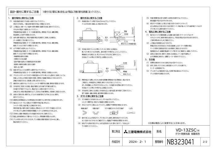 (LINEクーポン有)三菱電機 VD-13ZSC14 天井埋込形換気扇 本体 ダクト用換気扇 低騒音タイプ MITSUBISHI