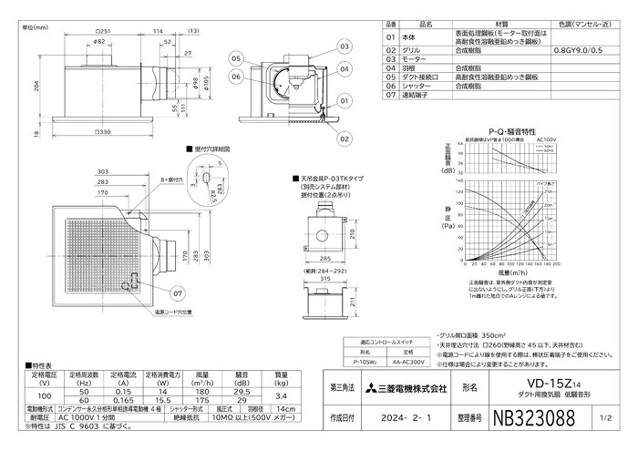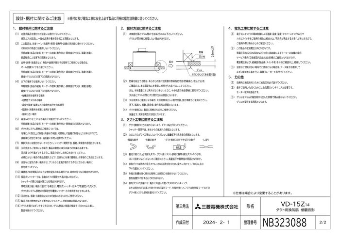 (LINEクーポン有)三菱電機 VD-15Z14 天井埋込形換気扇 本体 ダクト用換気扇 低騒音タイプ MITSUBISHI