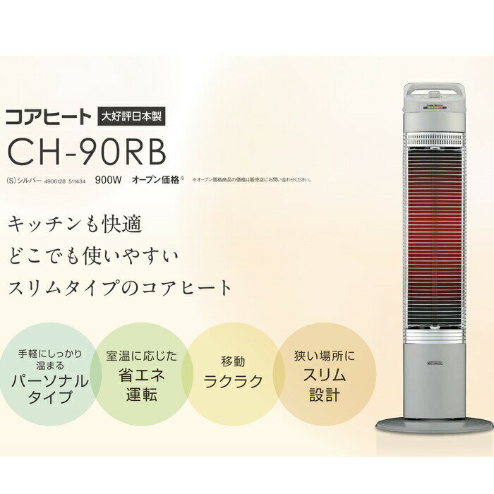 (LINEクーポン有)コロナ CH-90RB(S) コアヒートスリム 電気ストーブ 床置型電気暖房 遠赤外線 シルバー 日本製 遠赤外線電機暖房機 防寒 ヒーター CORONA