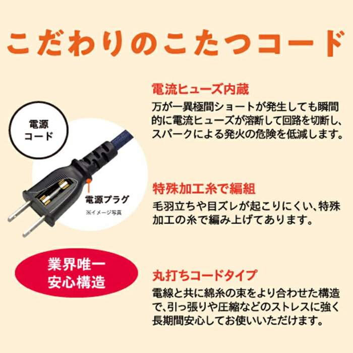 ※お客様のご都合による商品の返品・交換・キャンセルは受け付けておりません。 商品仕様をご確認の上、お間違いの無いようお願い致します。 ※型番通りのお手配になりますのでご注文前に必ず商品の仕様・サイズ・型番・色等を確認の上ご注文お願いします。 当店のお買い物ガイドも併せてご確認ください。 ◆メーカー:メトロ電気工業 ◆品名:こたつコード メトロ製こたつヒーター2ピン専用 5時間自動切タイマー 中間スイッチ 交換用 ◆品番:BC-2PLT(A) (BC2PLT(A)) ◆定格:AC125V 7A ◆電源コード:丸打ちコード ◆安全装置:電流ヒューズ ◆長さ:3m ◆2ピンタイプ ※メトロ製こたつヒーター【2ピン専用コード】です。 ※こたつ以外の電気器具には使用しないでください。 ※他社メーカーのこたつヒーターユニットには使用できません。 ※特殊なプラグ形状にはご使用いただけない場合がございます。 ◆切り忘れ防止に、安心の5時間自動オフタイマー付き。 ◆L字型器具用プラグでコードが傷みにくい。 ※沖縄県は配送不可となります。ご了承下さい。 ※発送予定日はメーカー在庫がある場合の納期となっております。