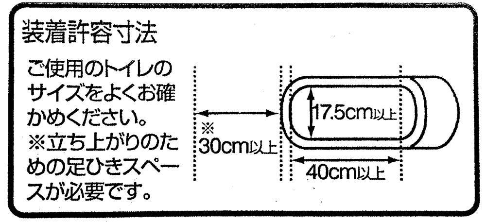 そのままはめるだけで和から洋へ和式トイレを洋式に!簡易洋式便座。大掛かりな工事をしなくても、和式トイレを洋式に変えることができます。抗菌加工。装着許容寸法:便器の内径幅17.5cm・奥行40cm以上、便器手前30cm以上(立ち上がりのための足ひきスペースが必要です。)サイズ(約)61×40.5×高さ20.5cm材質本体他/ポリプロピレン すべり止め/RNゴム 便座軸/スチール座面までの高さ13cmメーカー新輝合成