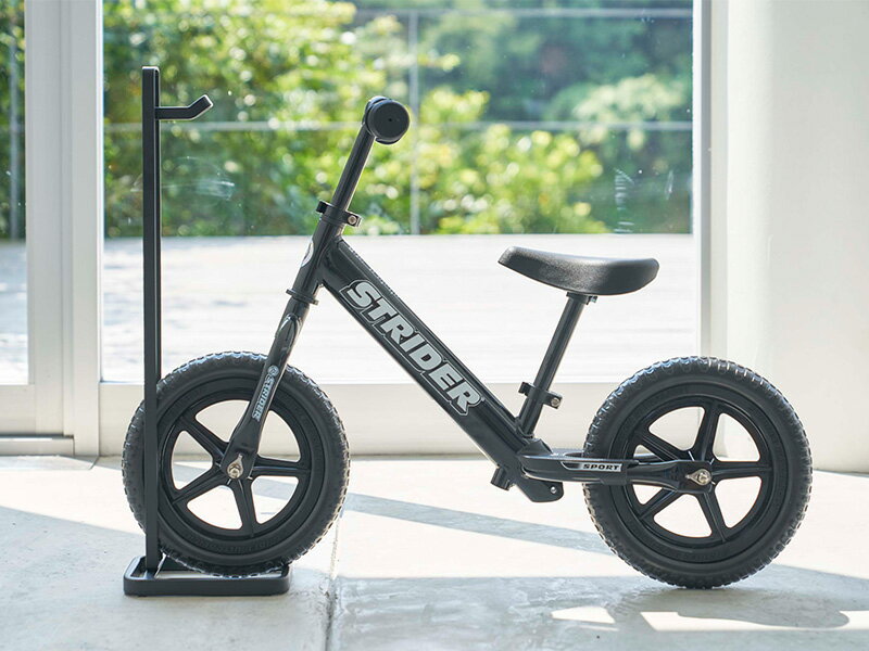 置くだけ簡単スタンドペダルなし自転車を自立させて収納できるスタンド。タイヤを固定自転車のタイヤを隙間に通すだけで簡単に固定できます。まとめて収納ヘルメットは大きなフックに引っ掛けて一緒に収納可能。小物収納に便利なフック付き肘、膝パッドなどよく使う小物は小さなフックに引っ掛けて収納できます。対応サイズタイヤ幅約4.5cm以内のペダルなし自転車(幼児用)付属品フック×1 六角レンチ※組立式ご注意この商品はスタンドのみの販売です。ストライダー、ヘルメットは付属しません。サイズ(約)幅15×奥行20×高さ63cm重量(約)820g材質本体/スチール(粉体塗装)耐荷重(約)フック(本体)/1kg フック(付属品)/250g品番4341製造国中国メーカー山崎実業商品バリエーション
